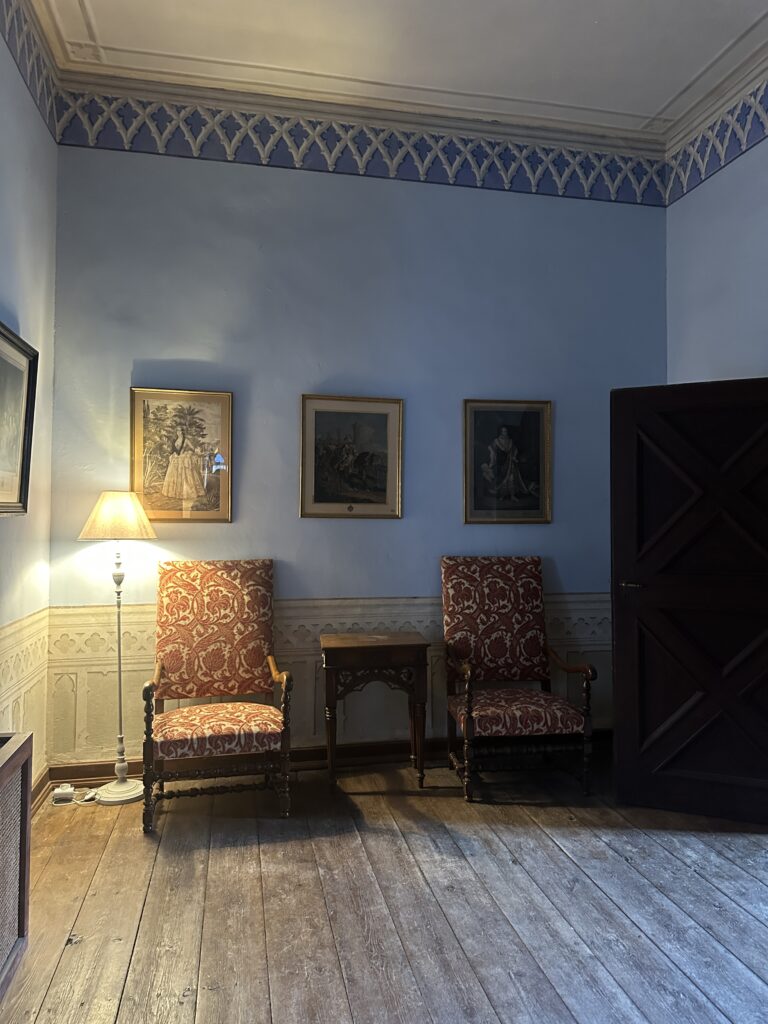 Μέσα στον Πύργο, απολαύσαμε δυσεύρετα πορτραίτα-θησαυρούς όπως γαμήλια λιθογραφία του Όθωνα και της Αμαλίας, πορτραίτα του Όθωνα με την ελληνική φουστανέλλα, την Αμαλία με την παραδοσιακή πελοποννησιακή φορεσιά κ.ά. Η μεγάλη αποκάλυψη ήταν το επίσημο σαλόνι της Αμαλίας με τα μασίφ κουφώματα, τον μπρούτζινο πολυέλαιο εκ Παρισίου και τον αυθεντικό διάκοσμο. Σε αυτήν την αίθουσα, η Βασίλισσα δεχόταν υψηλούς καλεσμένους από την Ευρώπη και παρείχε κεράσματα σε ευγενείς Αθηναίους.