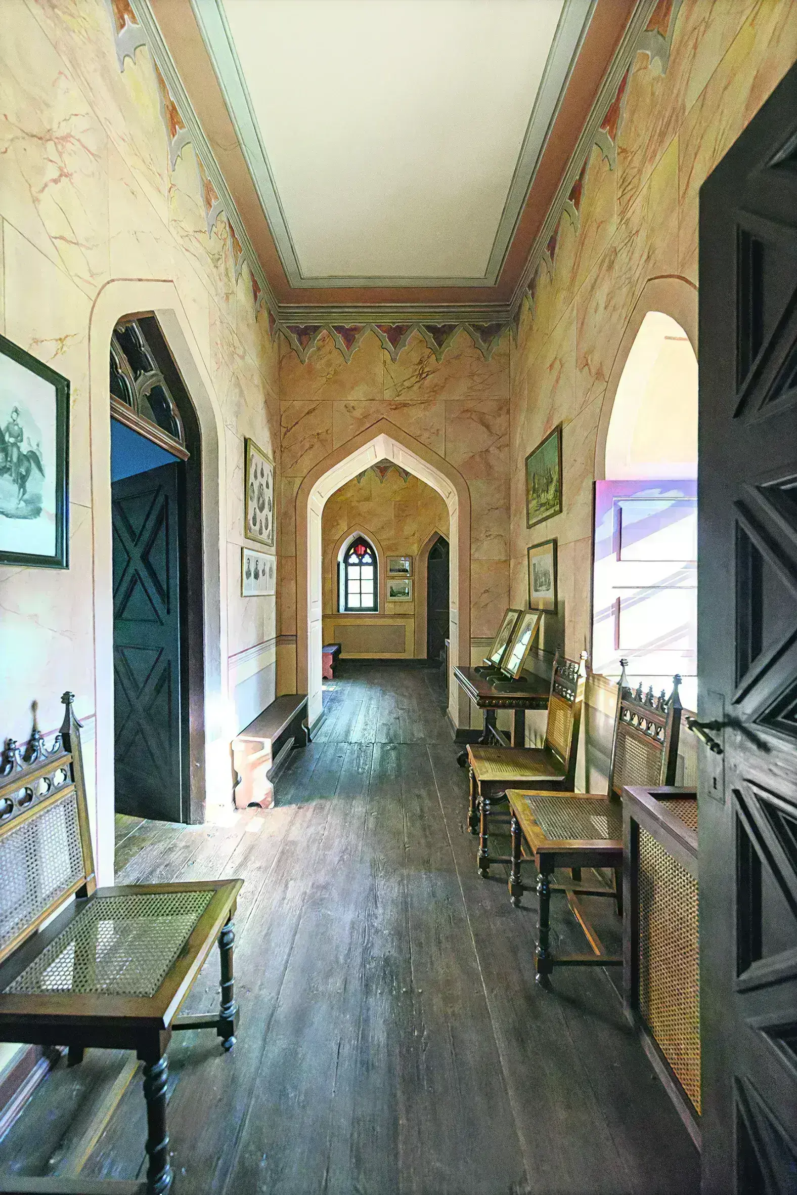Μέσω ενός χολ γοτθικής διακόσμησης εισέρχεται κανείς στην εντυπωσιακή αίθουσα των θυρεών, που καταλαμβάνει σχεδόν όλο τον πρώτο όροφο, με τους θυρεούς της Ελλάδας, της Βαυαρίας και του Ολτενμπουργκ. Σε μέρος του υπογείου βρίσκεται και η κάβα του πύργου. Υπήρξε πρότυπο κτήμα όχι μόνο στα χρόνια της Αμαλίας αλλά και μετά τη δημιουργία της πρώτης εταιρίας, «Αγροτική Εταιρία Πύργος Βασιλίσσης A.E.», το 1931. Η παραγωγή εκλεκτών κρασιών στο κτήμα είναι παράδοση που συνεχίζεται μέχρι σήμερα!