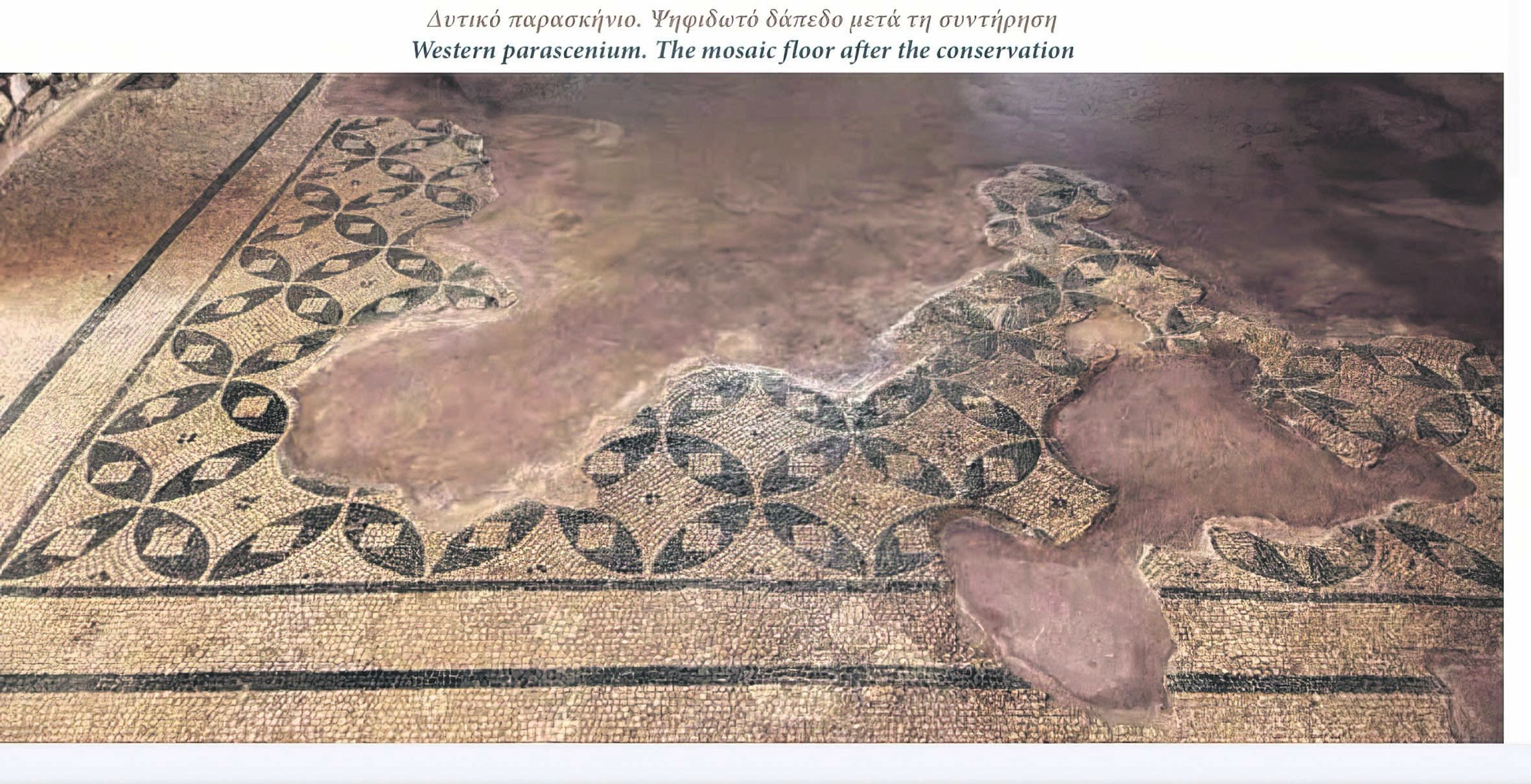 Στο πλαίσιο του έργου διεξήχθη και ανασκαφική έρευνα στον περιβάλλοντα χώρο του μνημείου, φέρνοντας στο φως ψηφιδωτά δάπεδα τα οποία συντηρήθηκαν, με γεωμετρικό διάκοσμο, αλλά και άγνωστα τεκμήρια ταφικής χρήσης του σκηνικού οικοδομήματος, κατά την πρωτοβυζαντινή περίοδο. Βρέθηκαν μεταξύ άλλων τέσσερα χάλκινα ρωμαϊκά νομίσματα μεταξύ των οποίων ένα εξάχαλκο, με κεφαλή Ηρακλή (δεκαετία 40 π.Χ., νομισματοκοπείου Πατρών) κι ένας ανώνυμος βυζαντινός φόλλις. Οι εργασίες διαμόρφωσης του περιβάλλοντος χώρου του μνημείου ολοκληρώθηκαν με τη φωτιστική ανάδειξή του.