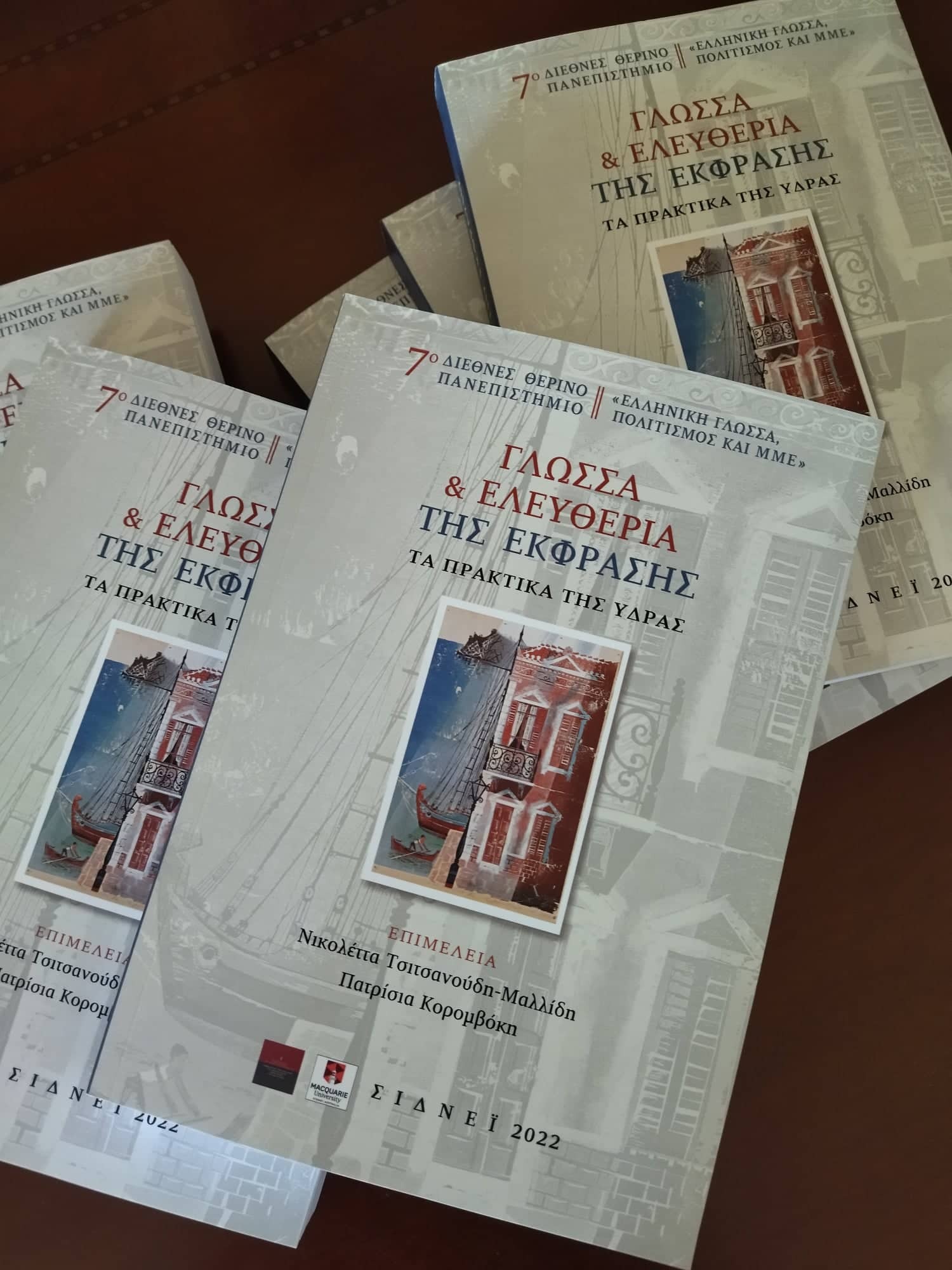 Ειδικότερα, το έργο εκδίδεται από το Εργαστήριο Μελέτης Κοινωνικών Θεμάτων, Μέσων Ενημέρωσης και Εκπαίδευσης του Παιδαγωγικού Τμήματος Νηπιαγωγών της Σχολής Επιστημών Αγωγής του Πανεπιστημίου Ιωαννίνων, σε συνεργασία με το Πρόγραμμα Νεοελληνικών Σπουδών του Τμήματος Μέσων Μαζικής Ενημέρωσης, Επικοινωνίας, Καλών Τεχνών, Γλωσσών και Λογοτεχνίας της Σχολής Ανθρωπιστικών Σπουδών του Macquarie University και υποστηρίζεται από το Macquarie Greek Studies Foundation Limited και τα αξιότιμα μέλη του. Περιλαμβάνει τις εισηγήσεις που έγιναν κατά τη διάρκεια της έβδομης διοργάνωσης του Διεθνούς Θερινού Πανεπιστήμιου «Ελληνική Γλώσσα, Πολιτισμός και ΜΜΕ» που πραγματοποιήθηκε με τη συμμετοχή του Κύκλου Ελλήνων Ακαδημαϊκών της Βοστώνης (The Circle of Hellenic Academics in Boston) στο νησί της Ύδρας τον Ιούλιο του 2021.