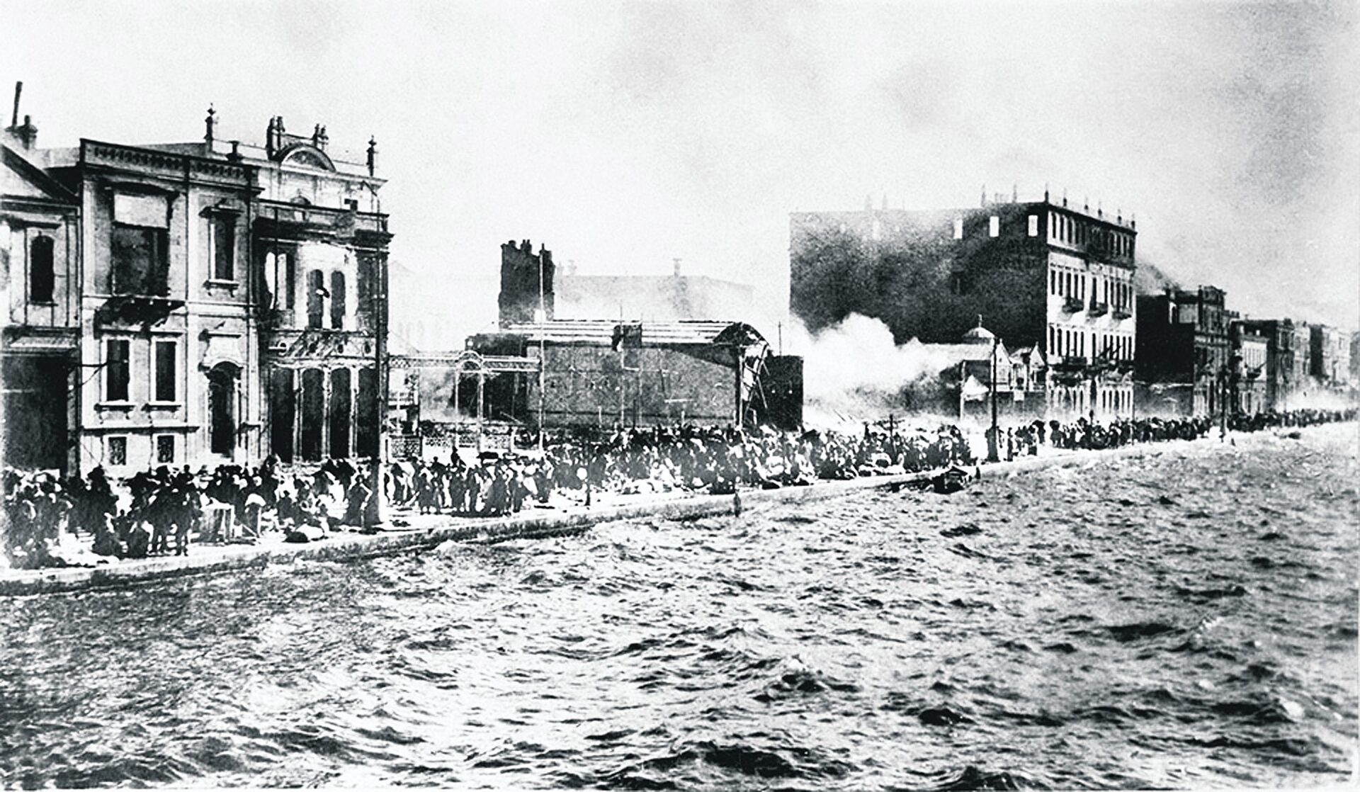 Ας σταθώ, λοιπόν, στον πατέρα με τους τρεις συστρατιώτες του που βρέθηκαν στο λιμάνι παρασυρμένοι από το ανθρωπομάνι. Και τα τέσσερα φανταράκια, δεκαεννιάχρονα, εικοσάχρονα, σκέφτηκαν κι έπεσαν στη θάλασσα -όπως ο κόσμος όλος γύρω τους-, αν και φαινόταν να λαμπαδιάζει και το κύμα. Ανήκουστη ανθρωποσύναξη, καθώς όλοι, Ελληνες, Αρμένιοι, Κούρδοι, περαστικοί, κάτοικοι προσωρινοί, στρατιωτικά υπολείμματα και πρόσφυγες πλέον χαροκαμένοι, ήλπιζαν ότι κάποιο από τα εμπορικά ή πολεμικά πλοία που είχαν αγκυροβολήσει σε απόσταση θα δεχόταν να τους παραλάβει. Οσοι μπόρεσαν να τα πλησιάσουν γύρισαν σκασμένοι. Μέχρι και καυτό νερό τούς έριξαν για να τους απομακρύνουν. Είχαν, βλέπεις, οι πλοιαρχίες διαταγές από τις κυβερνήσεις τους να μη βοηθήσουν, ώστε να μην παραβιαστεί η ουδετερότητα. Εθελοτυφλούσαν οι πολιτισμένοι λαοί, παιδί μου. Ομως, ο κόσμος όλος, απελπισμένος, μυρμήγκιαζε στην περίφημη προκυμαία Κε. Επρεπε, πάση θυσία, να αποφύγουν τις σφαγές και τις βιαιοπραγίες από τους τσέτες του Κεμάλ Ατατούρκ.