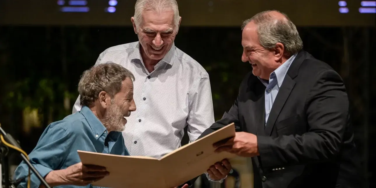 Αφού μίλησε ο γγ της ΚΕ του ΚΚΕ, Δημήτρης Κουτσούμπας και ο πρώην υπουργός του ΠΑΣΟΚ, Γιώργος Λιάνης, στο βήμα ανέβηκε ο Δήμαρχος Περιστερίου, Ανδρέας Παχατουρίδης που μετά από σύντομο χαιρετισμό θέλει να προσφωνήσει τον πρώην πρωθυπουργό. Με νεύμα ο Κώστας Καραμανλής απέκλεισε το να μιλήσει και ανέβηκε στη σκηνή μόνο για να δώσει την τιμητική πλακέτα στον Σταύρο Ξαρχάκο.