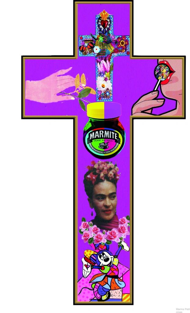 Μαρίνα Πετρή: Ξεκινά από την μετατροπή του ready-made αντικειμένου σε τέχνη όπου η ξυλοκατασκευή σταυρών για βάση βυζαντινής ζωγραφικής ζωγραφίζεται επιθετικά abstract, ή με άγριο εξπρεσιονισμό σε συνδυασμό με μια μονόχρωμη πλάτη και ανάλογη κορνίζα, ή σχέδια με μελάνι που πλαισιώνονται από μια μπαρόκ χρυσή κορνίζα που και αυτής η επιλογή αποτελεί τελικά μέρος του έργου. Μια άλλη μικρή σειρά είναι σταυροί pop art – digital art μάλλον ασαφούς σχήματος που προβάλλονται από μια υφασμάτινη επιφάνεια σαν να αιωρούνται και περιτριγυρίζονται από χαρακτηριστικές vintage κορνίζες. Τέλος, οι δυσδιάστατοι επιτραπέζιοι pop art σταυροί αποτυπώνουν την γλυκειά φύση του παράδοξου με την ίδια μαγεία του κόσμου της Αλίκης των θαυμάτων.