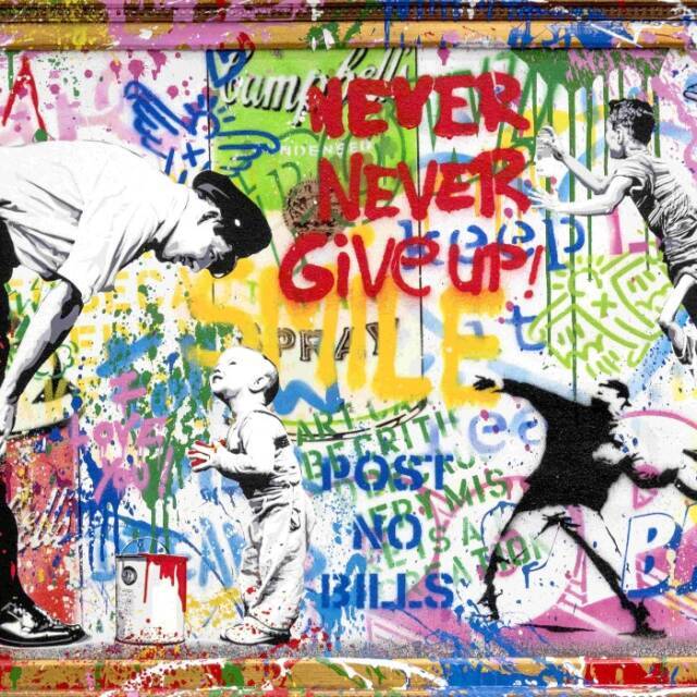 Ακόμα ο Mr. Brainwash παρουσιάζει έργα στα οποία μας προτρέπει «Never give up» («Ποτέ να μην τα παρατάμε»), «Smile» («Χαμογέλα»), «Keep Smiling» («Συνέχισε να χαμογελάς»), «Follow your dreams» («Ακολούθησε τα όνειρα σου»), «Life is beautiful» («Η ζωή είναι ωραία»), «Love is the answer» («H αγάπη είναι η απάντηση»), σε ένα ιδιαίτερο δικό του σύμπαν, όπου τα παιδιά κυριαρχούν και φέρνουν το αύριο και την ελπίδα στον κόσμο, παράλληλα με τη χρήση εμβληματικών εικόνων και ειδώλων.