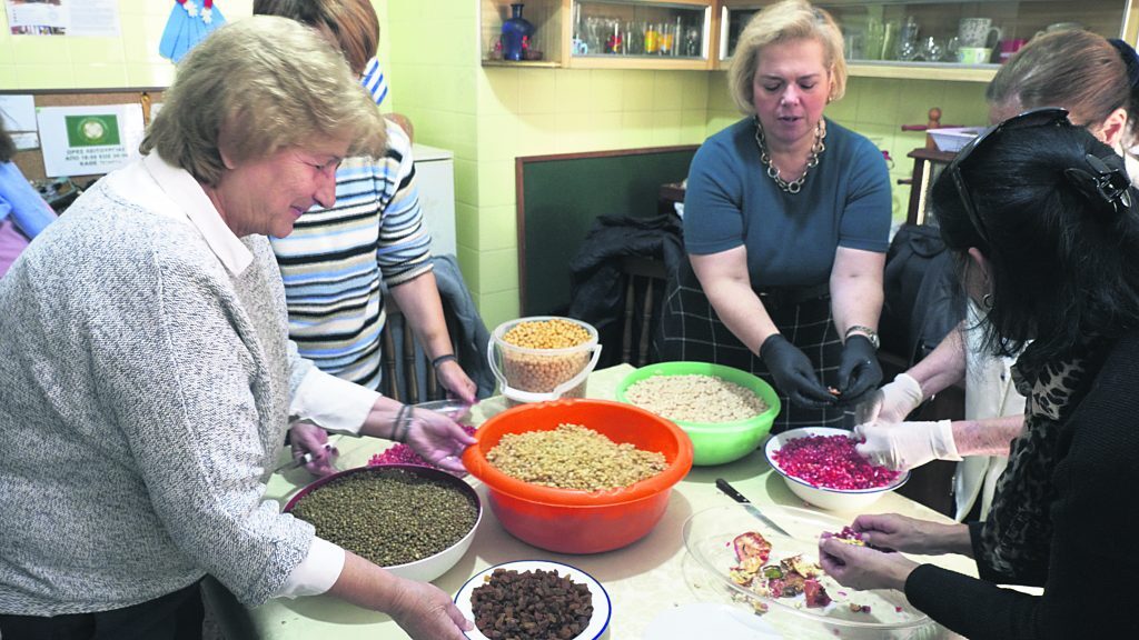 Σύμφωνα με το έθιμο, οι πιστοί μετέχουν σε μία εμπειρία γιορτής και προετοιμασίας! Την παραμονή των Εισοδίων της Θεοτόκου, στις 20 Νοεμβρίου κάθε έτους, σε έναν μικρό μεταβυζαντινό ναό, γνωστό και ως η «Παναγίτσα στ’ Αρχαία», μέσα στον αρχαιολογικό χώρο της Ελευσίνας, εκεί που κατά την αρχαιότητα τελούνταν τα Ελευσίνια Μυστήρια, μετά την ακολουθία του εσπερινού, ευλογούνται από τον ιερέα η ιερή τροφή της Δήμητρας και οι άλλες δύο τροφές που συγκροτούν την τριάδα της μεσογειακής δίαιτας.
