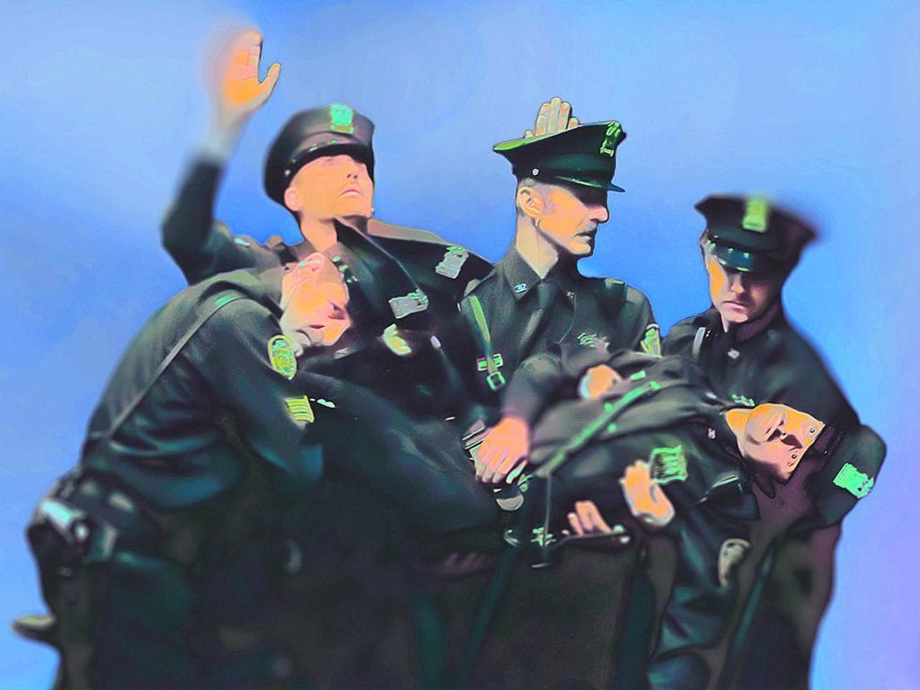 Ο Ιταλός σκηνοθέτης Ρομέα Κατσελούτσι στήνει στη Στέγη μια παράδοξη τελετουργία για τον νόμο και την τάξη. Μια μνημειώδης φάρσα για την ελεύθερη βούληση. Το θέατρο μεταμορφώνεται σε ένα κινηματογραφικό τοπίο απ’ όπου η ανθρωπότητα παρελαύνει ως μια υπάκουη αδελφότητα, έτοιμη ανά πάσα στιγμή να επιτεθεί στην ίδια της τη σάρκα.