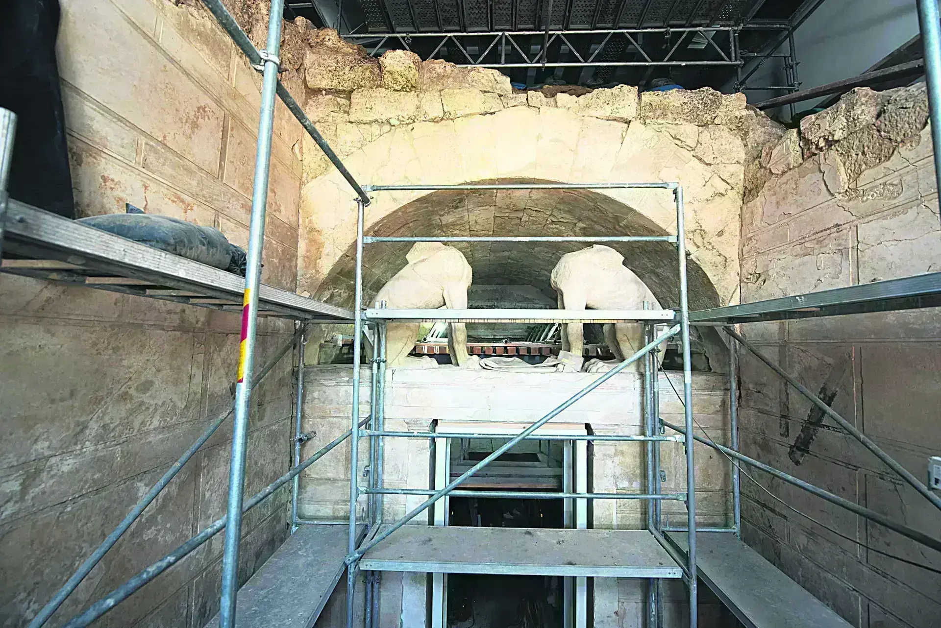 Το νιώθεις αμέσως όταν περνάς το κατώφλι του, βυθίζοντας το σώμα σου πίσω και κάτω από τις σκαλωσιές, καθώς τα έργα αναστήλωσης συνεχίζονται με γοργό ρυθμό. Το πρώτο που αντικρίζεις είναι η μνημειακή πρόσοψη με τις εντυπωσιακές Σφίγγες, αριστερά και δεξιά, από μάρμαρο Θάσου, ύψους σχεδόν 1,5 μέτρου η καθεμιά. Κατεβαίνοντας τα σκαλιά σε περιμένουν, επίσης αριστερά και δεξιά, οι δυο Καρυάτιδες ύψους περίπου δύο μέτρων, που φορούν χειριδωτό χιτώνα, στέκονται πάνω σε βάθρο και είναι εξαιρετικά επιβλητικές. Ο επόμενος τρίτος θάλαμος είναι ο κατ’ εξοχήν τάφος, όπου και βρέθηκαν οστά που ανήκουν σε πέντε διαφορετικά άτομα, κάνοντας τον αρχικό ευσεβή πόθο να είναι θαμμένος εδώ ο Μέγας Αλέξανδρος να καταρρέει. Το σκελετικό υλικό ανήκει σε μία γυναίκα ώριμης ηλικίας, δύο άντρες νεότερους, ένα νεογέννητο κι έναν ακόμα ενήλικα που δεν μπορούσε να προσδιοριστεί το φύλο του. Ο τάφος ανήκει στην εποχή του τέλους του 4ου αιώνα και αρχές 3ου αιώνα π.Χ.