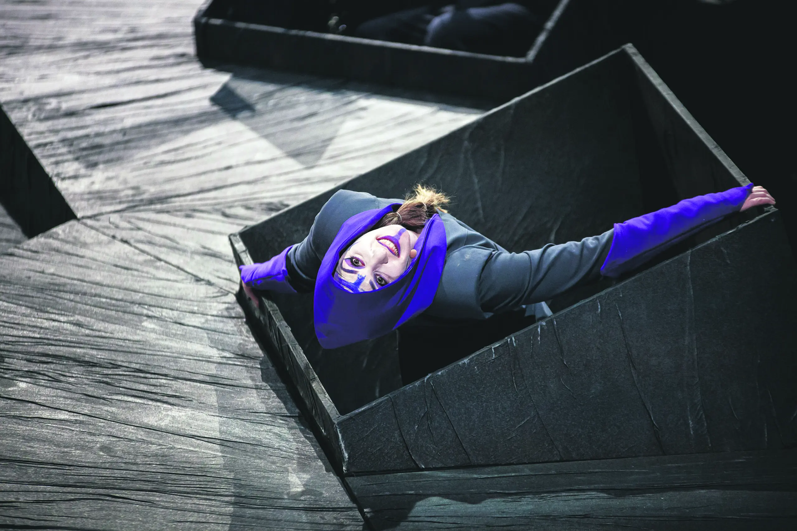 Ο σκηνικός χώρος της Κατερίνας Παπαγεωργίου, η οποία υπογράφει και τα κοστούμια, παραπέμπει στο παιγνιώδες μοτίβο του παιχνιδιού «Whac-A-Mole» και σε καταφύγιο πολέμου. Τα σώματα των ηθοποιών δημιουργούν μια αίσθηση συνεχούς εμφάνισης και εξαφάνισης, εγρήγορσης, απειλής και καταστολής. Η αίσθηση ζόφου ενός χώρου εγκλεισμού ή καταφυγίου αντιπαραβάλλεται με το παιγνιώδες και ενίοτε σαρκαστικό ύφος της μουσικής.