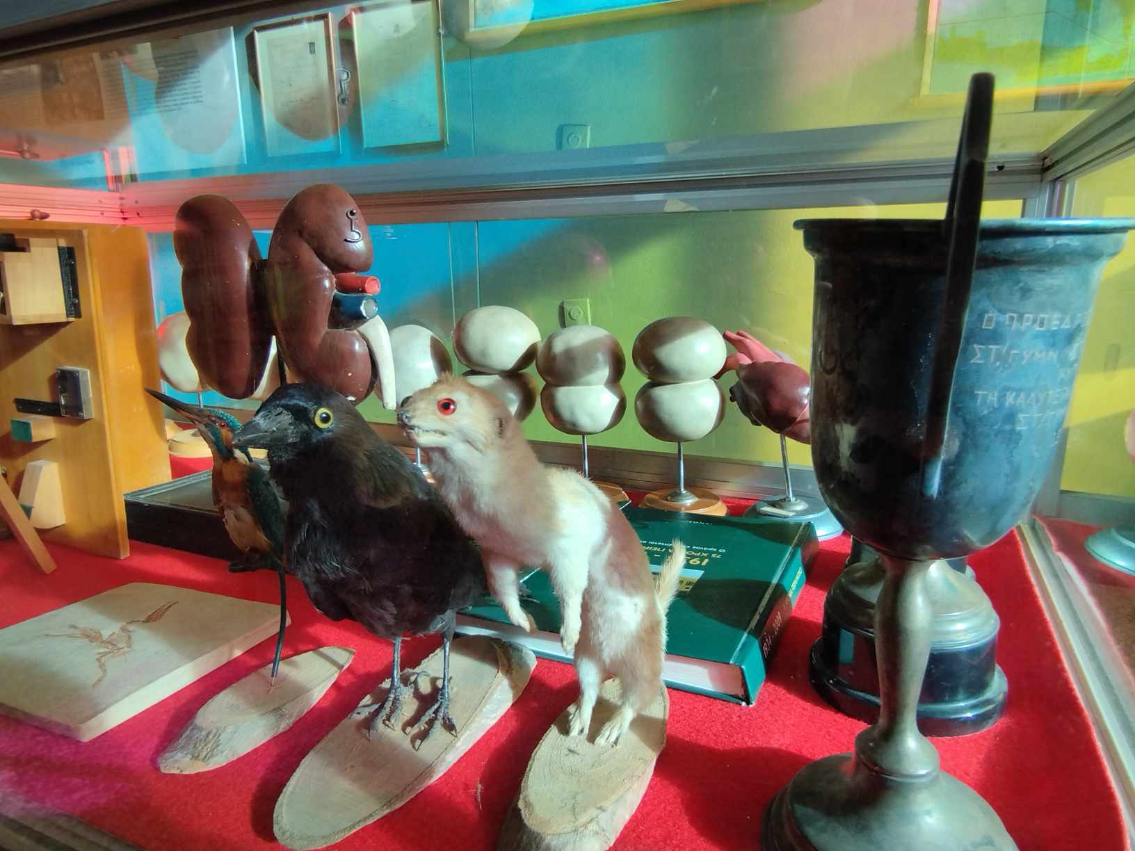 Καθώς ο επισκέπτης ξεναγείται στις αίθουσες του πρώην παιδικού σταθμού, βλέπει το πλούσιο εποπτικό υλικό που προέρχεται από τα αρχεία δημόσιων και ιδιωτικών σχολείων. Σχολικοί χάρτες που ήταν κρεμασμένοι στις αίθουσες ή τους διαδρόμους του σχολείων, απεικονίζουν την αρχαία Ελλάδα, τις χώρες του κόσμου, τον Τρωικό πόλεμο, πτηνά της χώρας μας ή ακόμα και χημικά στοιχεία. Σάλπιγγες, τύμπανα, φιλμ που περιέχουν εκπαιδευτικές ταινίες, βαλσαμωμένα ζώα και εκμαγεία που χρησιμοποιούνταν στο μάθημα της βιολογίας – ανατομίας, κάποια από αυτά …ταλαιπωρημένα από ζωηρούς μαθητές, «καλωσορίζουν» τον επισκέπτη σε νεότερες σχολικές περιόδους.
