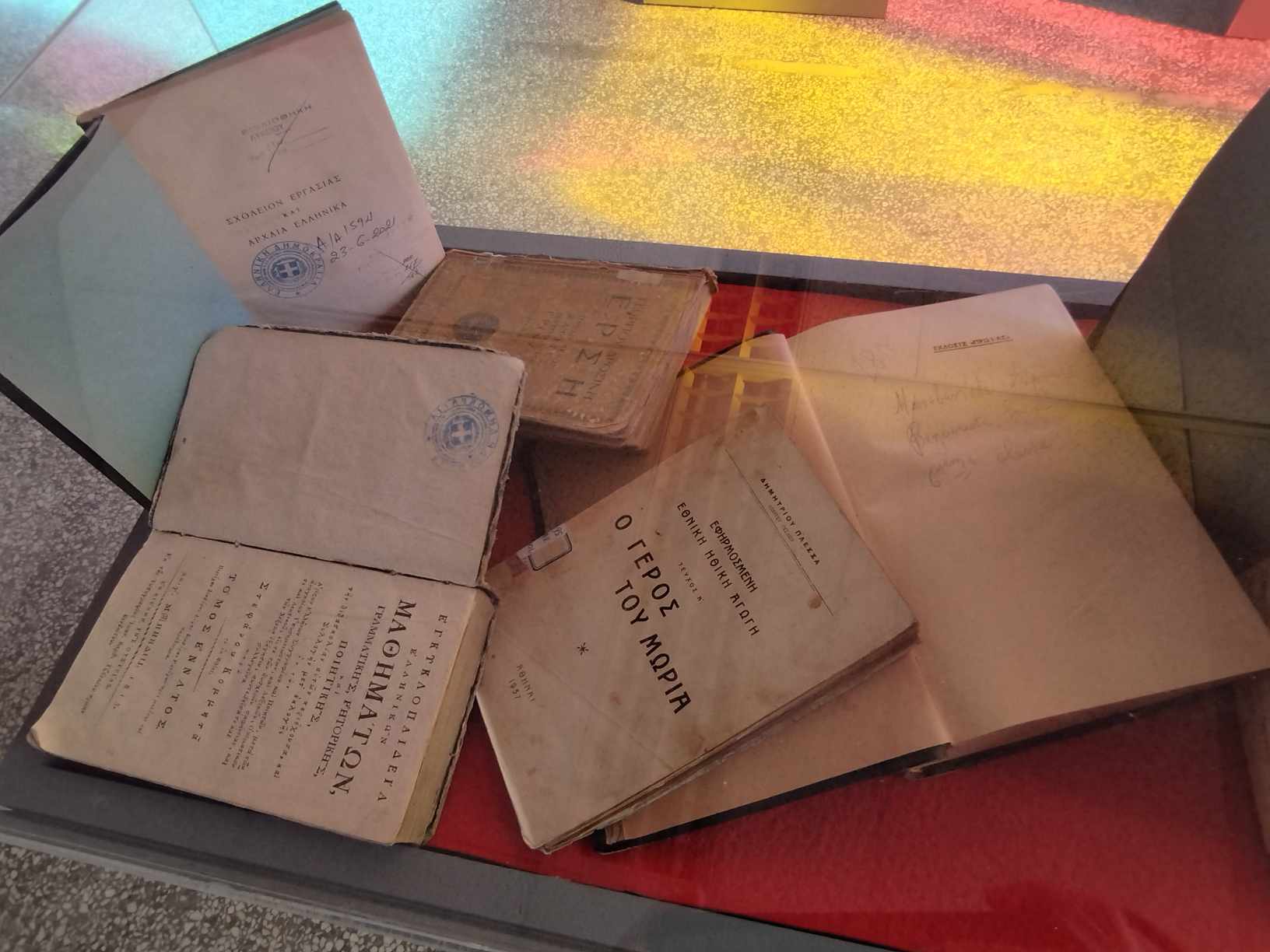 Στις ειδικές προθήκες υπάρχουν πρωτότυπα μαθητολόγια, πιστοποιητικά σπουδής, εγκυκλοπαίδειες και βιβλία, κάποια εκ των οποίων -σύμφωνα με τον άνθρωπο που έκανε την έρευνα, δεν έχουν ταξινομηθεί, κάτι που σημαίνει ότι -πέρα από την εκπαιδευτική τους αξία, πιθανόν να έχουν σημαντική ιστορική αξία.