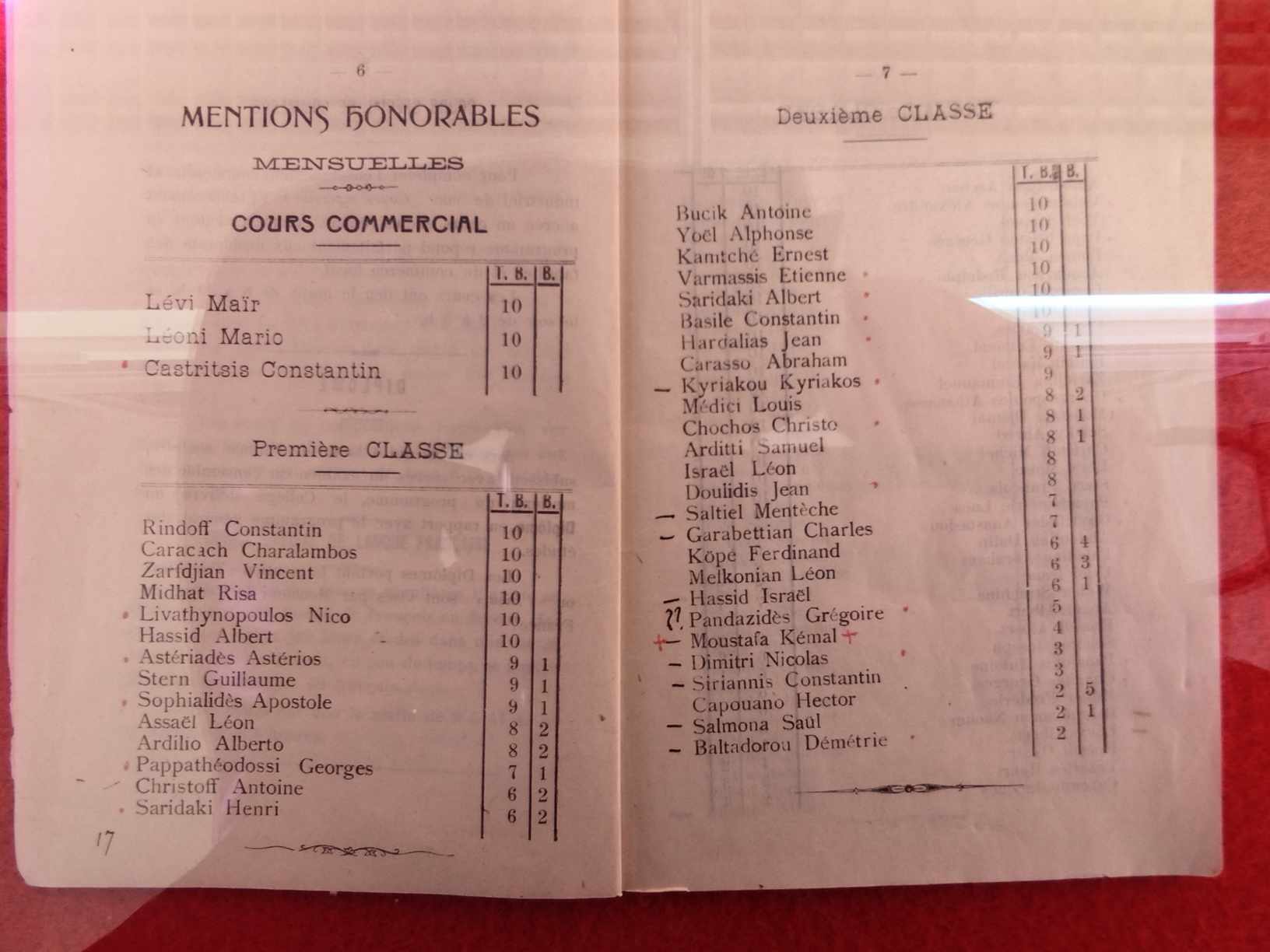 Στα αντίστοιχα τεκμήρια του Δελασάλ, σε βιβλίο που περιέχει τιμητικές αναφορές, ανάμεσα σε άλλα ονόματα της δεύτερης τάξης υπάρχει το «Moustafa Kemal», που -όπως υποστηρίζει ο κ. Μαραντζίδης αφορά τον Κεμάλ Ατατούρκ. «Ήταν τελειόφοιτος του Δελασάλ και μετά συνέχισε τις σπουδές του στην Κωνσταντινούπολη», εξηγεί.