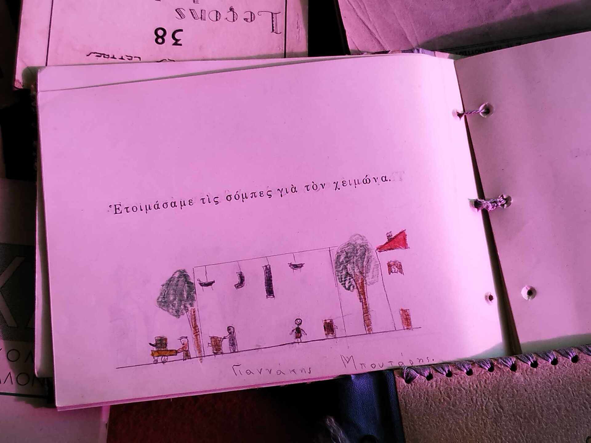 Δίπλα σ’ αυτήν εκτίθεται απόσπασμα αλληλογραφίας των δασκάλων του σχολείου, που αναφέρει ότι τα πρώτα χρόνια, επειδή δεν υπήρχε χώρος, ήταν αναγκασμένοι να παραδίδουν μαθήματα τους θερινούς μήνες, για να μπορούν τα παιδιά να βρίσκονται στην ύπαιθρο.