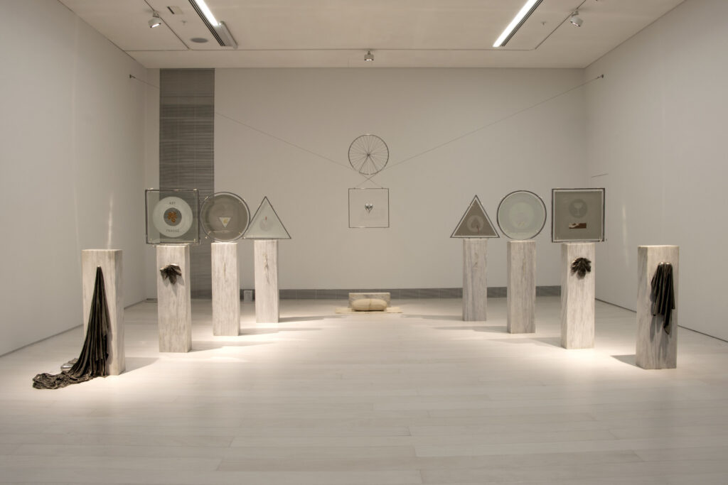 Γεωμετρικές συνθέσεις παραπέμπουν σε μια υπαρξιακή και μεταφυσική αναζήτηση, πραγματευόμενες τον χώρο και τον χρόνο της γλυπτικής πράξης. Με την εγκατάσταση ΑΤΟΠΟΝ, 1997, όπως και με άλλα έργα της ίδιας σειράς, ο Θόδωρος αναφέρεται σε αυτή την επισφαλή συνθήκη – την ισορροπία μεταξύ εύθραυστου και άθραυστου, φθαρτού και αιώνιου.