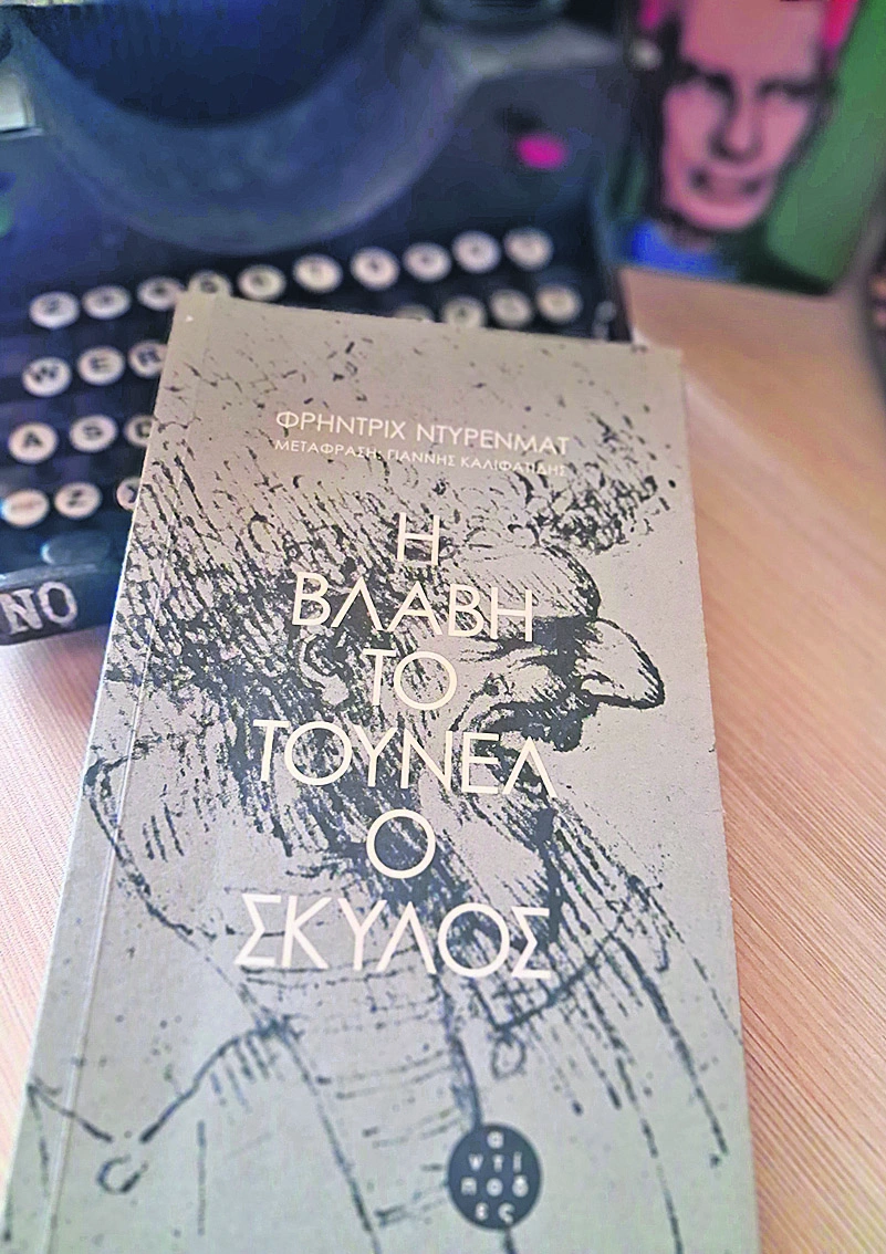 Σκύλος: Είχα μια υποψία θρησκευτικής διάστασης. Ετσι, ψάχνοντας βιογραφικά στοιχεία του του συγγραφέα, έπεσα πάνω σε αυτό: «Κάποτε αποκάλεσε τον Χριστό “ίσως τον πρώτο θρησκευόμενο άθεo… που δεν αναζητούσε πλέον τον Θεό σε μεταφυσικές εικασίες αλλά μάλλον στον εαυτό του”» (Roger Alan Crockett, Understanding Friedrich Dürrenmatt). Γλώσσα αέρινη, αμφίβολη, με ήρωες που είναι και δεν είναι, γεγονότα που συμβαίνουν και δεν συμβαίνουν. Μου άρεσε η σημειολογία των χρωμάτων και των επίπλων. Μου θύμισε λίγο Ντίλαν Τόμας. Εξαιρετικό.