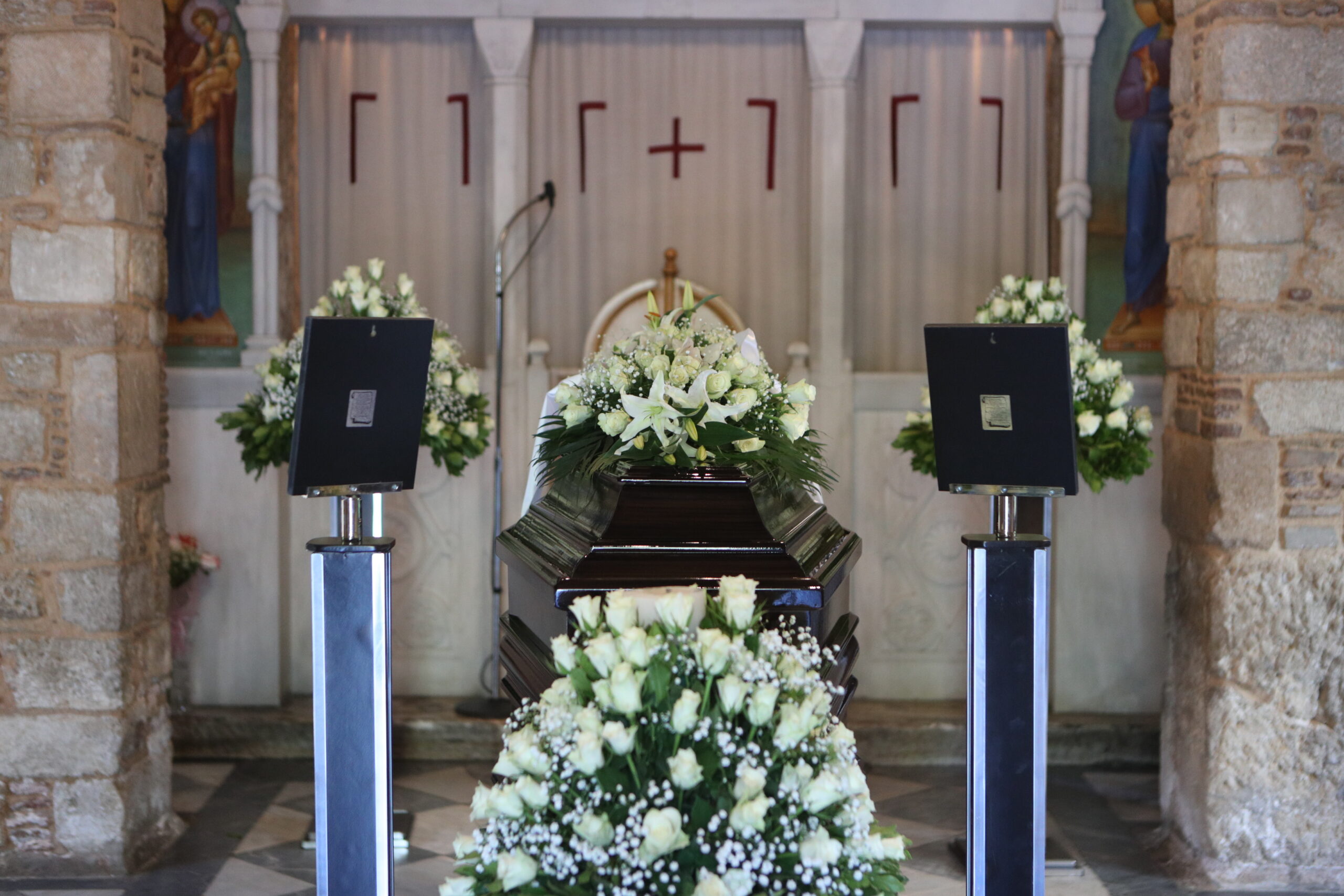 Στη Μητρόπολη Αθηνών συγκεντρώθηκαν η οικογένεια του Πετρολούκα Χαλκιά και πλήθος κόσμου για να αποχαιρετήσουν τον σπουδαίο δεξιοτέχνη του κλαρίνου. Παρόντες ο γιος του Γιάννης και η κόρη του Ολυμπία.