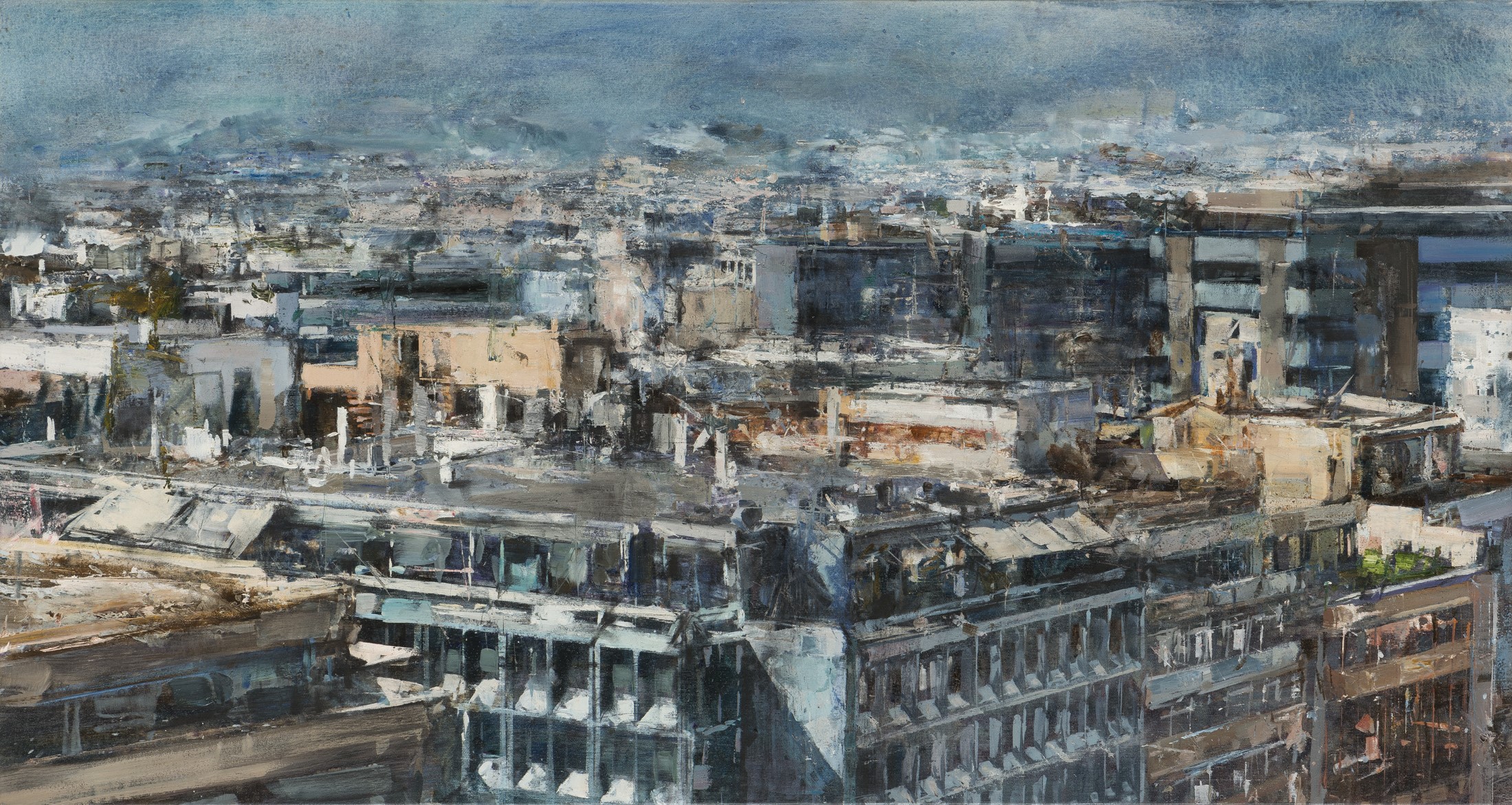 Αυτή τη φορά ο καταξιωμένος εικαστικός καλλιτέχνης, κοιτάζει την πόλη που έζησε και μεγάλωσε, την Αθήνα και την παρουσιάζει μέσα από τη δική του εικαστική ματιά. Μια πόλη σε διαρκή ροή, που μας είναι γνώριμη, τα τοπόσημα της είναι εδώ, ο Λυκαβηττός, η Ακρόπολη, οι μεγάλες λεωφόροι της, αλλά μπορεί ακόμα να μας αποκαλύπτεται, καθώς ο καλλιτέχνης ανασύρει και άλλα επίπεδά της.