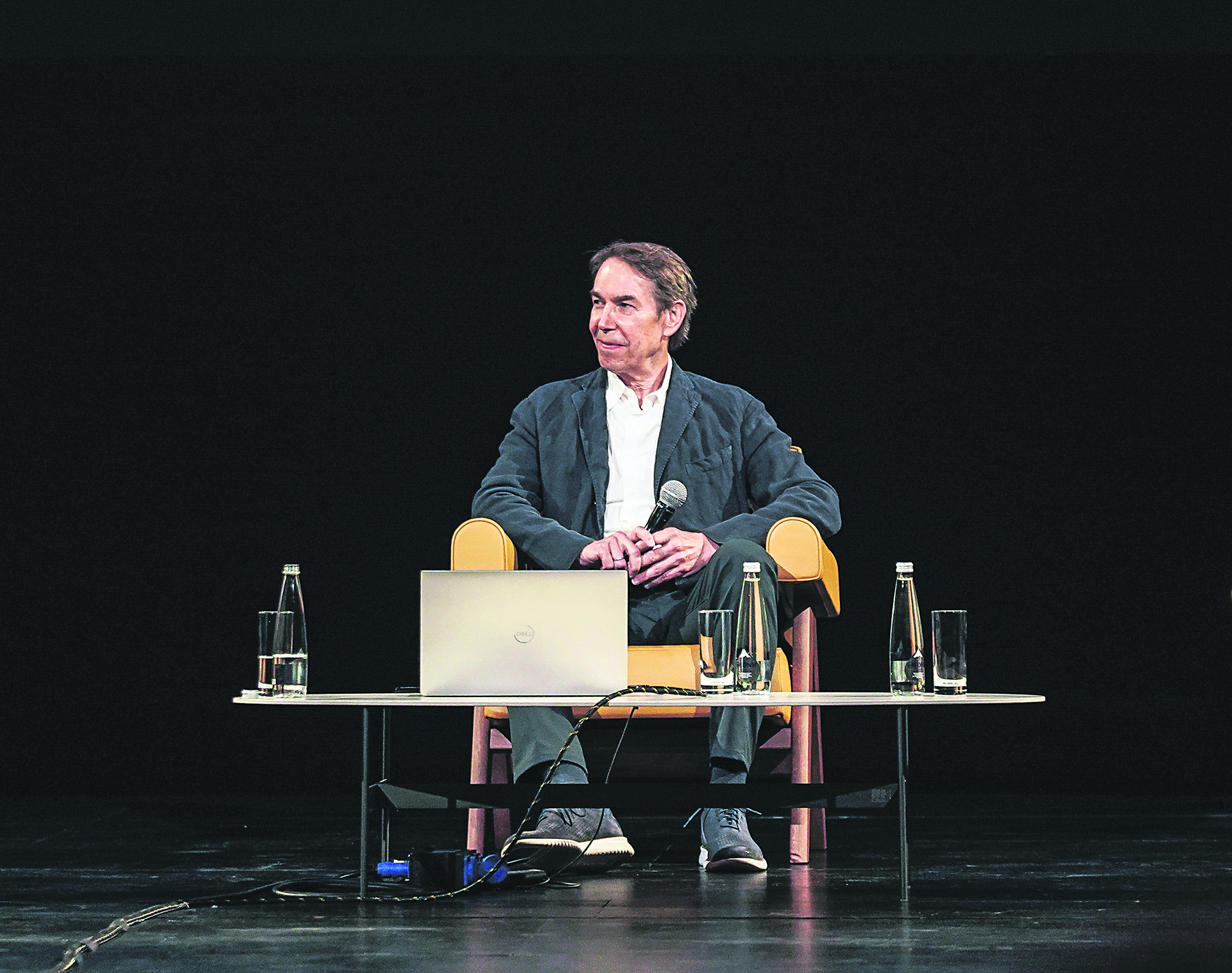 Τον διάσημο, ακριβοπληρωμένο, αλλά και αμφιλεγόμενο καλλιτέχνη καλωσόρισε στην κατάμεστη Στέγη η διευθύντρια Πολιτισμού του Ιδρύματος Ωνάση, Αφροδίτη Παναγιωτάκου, η οποία μίλησε με θερμά λόγια για το έργο του. Η συζήτηση που ακολούθησε έγινε στο πλαίσιο του διεθνούς συνεδρίου «Art for Tomorrow», που πραγματοποιείται στην Αθήνα σε συνεργασία με τους «New York Times» και προσκεκλημένους ομιλητές από όλο τον κόσμο.