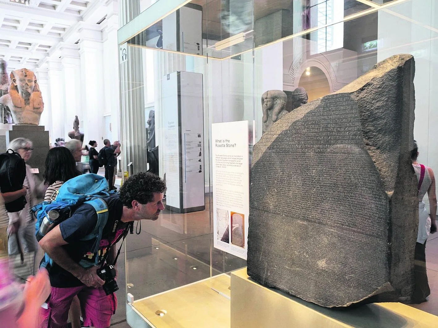 Ενα από τα σπουδαιότερα εκθέματα του Βρετανικού Μουσείου είναι η Στήλη της Ροζέτας, μια μαύρη πλάκα από βασάλτη χαραγμένη με αρχαία γραφή. Οι επιγραφές της -με ιερογλυφικά, αιγυπτιακά δημοτικά και αρχαία ελληνικά- και ο πολιτισμός της Αρχαίας Αιγύπτου από όπου προήλθε μαγνητίζουν το ενδιαφέρον επιστημόνων και επισκεπτών.