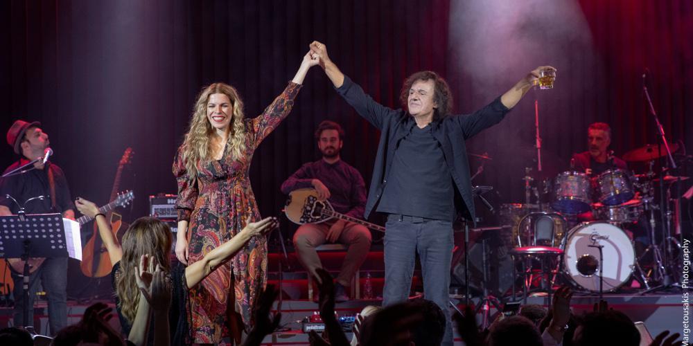 Ο αιώνιος έφηβος, Βασίλης Παπακωνσταντίνου, μας παρέσυρε με την ενέργειά του και το ανεξάντλητο ρεπερτόριό του, ενώ η Βιολέτα Ίκαρη, με τη δωρική της ευγενική παρουσία ήταν η απόλυτη παρτενέρ του στη σκηνή.