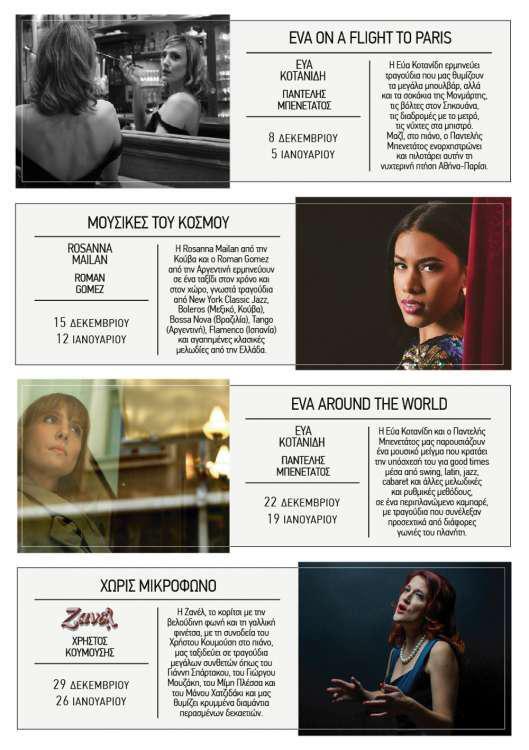 Η Rosanna Mailan από την Κούβα και o Roman Gomez από την Αργεντινή ερμηνεύουν σε ένα ταξίδι στον χρόνο και στον χώρο, γνωστά τραγούδια από New York Classic Jazz, Boleros (Μεξικό, Κούβα), Bossa Nova (Βραζιλία), Tango (Aργεντινή), Flamenco (Ισπανία) και αγαπημένες κλασικές μελωδίες