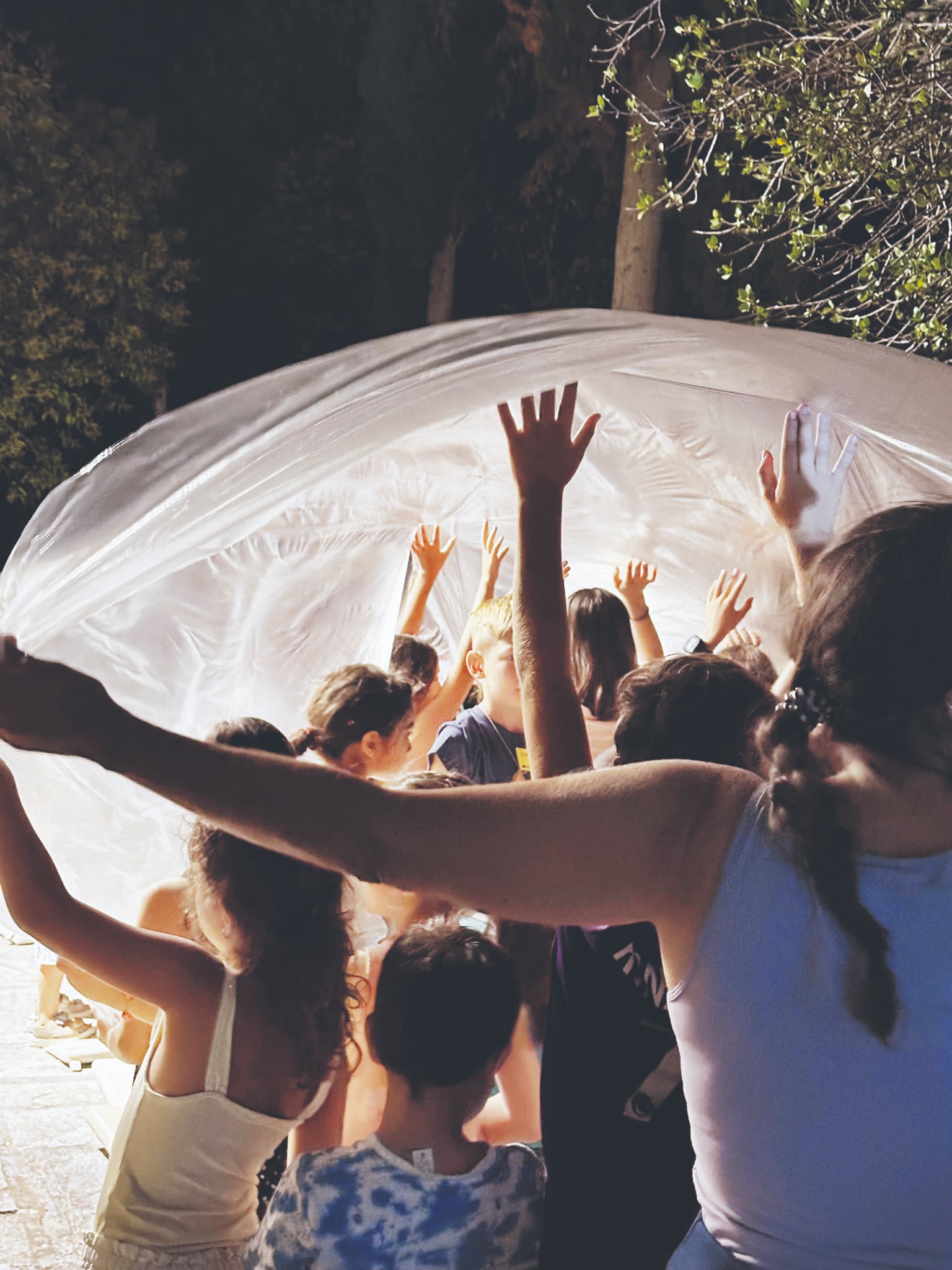 «Ο κοινός σχεδιασμός και η τριβή με τον χώρο και τις συνθήκες μάς βοήθησαν να αποκτήσουμε μια μεγαλύτερη ευελιξία στο πώς θα διαχειριζόμαστε παιδαγωγικά το πρόγραμμα ανάλογα με τους συμμετέχοντες και ανάλογα με το ύφος της παράστασης», εξηγεί η κ. Τσάκωνα.