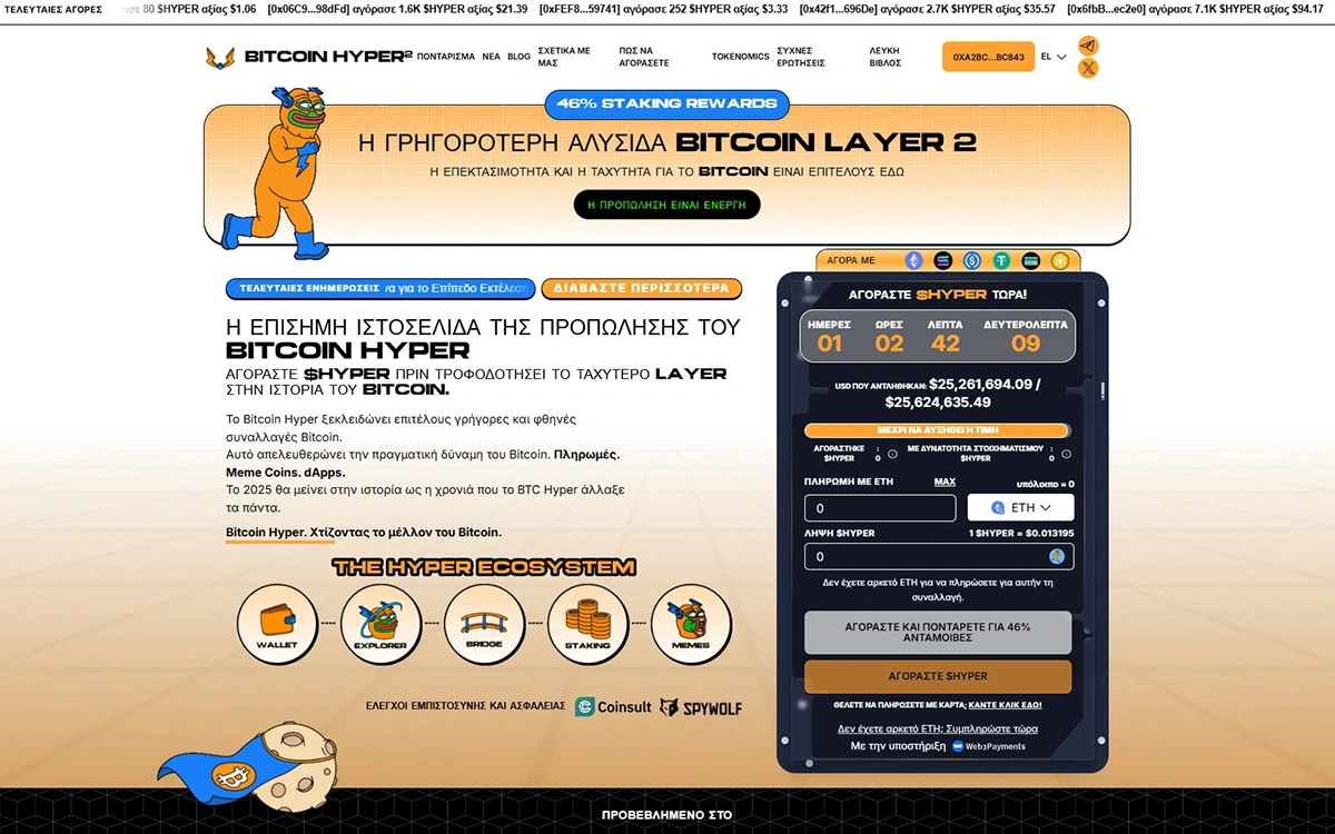 Με συμβολική συνολική προσφορά στα 21 δισεκατομμύρια tokens, το $HYPER δίνει ανταμοιβές στους κατόχους του και προσφέρει εργαλεία για staking, ανάπτυξη και επενδύσεις. Σε μια περίοδο αυξημένης ρευστότητας, τέτοια έργα μπορούν να επωφεληθούν σημαντικά, προσφέροντας λύσεις που ενώνουν τη σταθερότητα του Bitcoin με τη δυναμική της νέας τεχνολογίας.