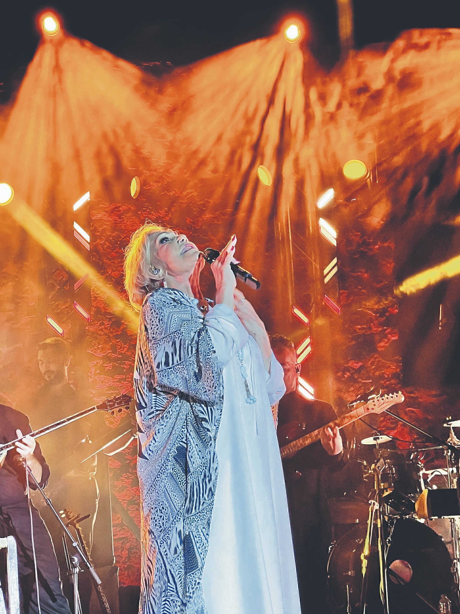 Όχι μόνο τραγούδησε μεγάλες, αγαπημένες επιτυχίες της, από την τεράστια καριέρα της, από το «Ανοιξε πέτρα» έως το «Παιδί από την Ανάβυσσο» και το «Σύνορα η αγάπη δεν γνωρίζει», αλλά και με πολλή όρεξη και χιούμορ απευθύνθηκε στο κοινό, που γέμισε ασφυκτικά τον προαύλιο χώρο της Μονής Τοπλού, διηγήθηκε ιστορίες, χόρεψε, «έπαιξε» με τους μουσικούς της, ήταν ευρηματική, χαρούμενη, σπιρτόζα.