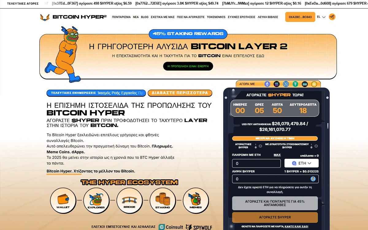 Με 26 εκατομμύρια δολάρια συγκεντρωμένα στην προπώληση, το Bitcoin Hyper έχει ήδη αποδείξει ότι είναι ένα από τα πιο υποσχόμενα έργα του 2025. Η πλατφόρμα υπόσχεται να φέρει το Bitcoin στο επόμενο επίπεδο, προσφέροντας ταχύτητα, χαμηλές χρεώσεις και προηγμένη ασφάλεια, χωρίς να θυσιάζει τη βασική αξία του Bitcoin. Αν συνεχίσει με αυτή την πορεία, το Bitcoin Hyper έχει τις προϋποθέσεις για να γίνει η επόμενη μεγάλη επιτυχία στην αγορά κρυπτονομισμάτων.
