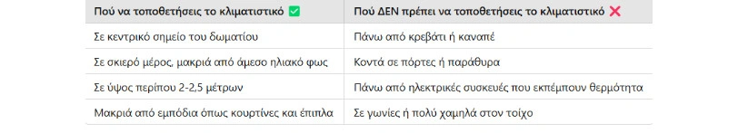 Η θέση του κλιματιστικού δεν είναι απλά θέμα αισθητικής, είναι θέμα εξοικονόμησης! Αν το τοποθετήσεις σε λάθος σημείο, ο αέρας δεν θα κυκλοφορεί σωστά, αναγκάζοντάς το να δουλεύει υπερωρίες. Το αποτέλεσμα; Υψηλότερη κατανάλωση, φουσκωμένοι λογαριασμοί και μειωμένη απόδοση.