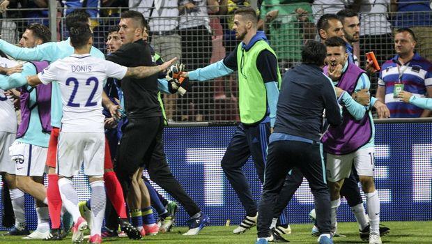 Η γροθιά του βοηθού προπονητή της Βοσνίας στον Γιάννη Γιαννιώτα, η εισβολή οπαδών στον αγωνιστικό χώρο, οι επιθέσεις και το ξύλο στην κερκίδα των φίλων της Εθνικής μας από “ντου” Βόσνιων και το ότι οι παίκτες μας αποχώρησαν δέκα λεπτά μετά τη λήξη του ματς, γράφτηκαν στο φύλλο αγώνα από τον Νίκολα Ριτσόλι και τους παρατηρητές.