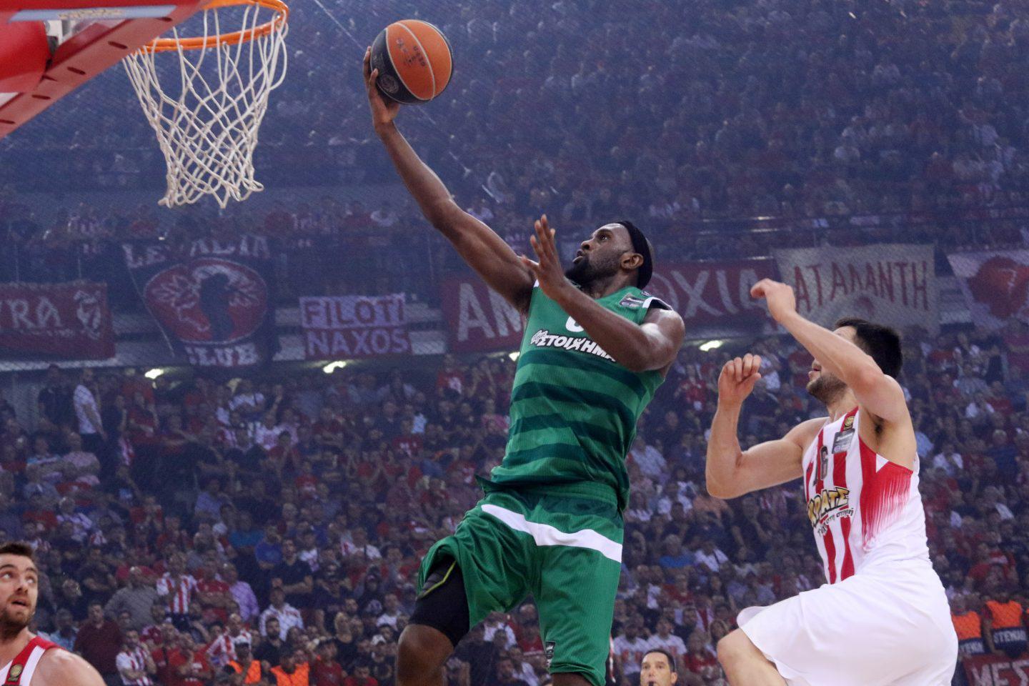 Με Παπανικολάου και Μιλουτίνοφ στην πεντάδα του, ο Ολυμπιακός ακούμπησε στο ξεκίνημα του τελικού τη μπάλα στη ρακέτα την ώρα που οι πράσινοι επέμεναν στο περιφερειακό σουτ και έβρισκαν σίδερο. Οι Πειραιώτες έβαλαν τρία σερί τρίποντα για το 11-3 στο 4′, με τον έξαλλο Πασκουάλ να καλεί timeout, να επιστρατεύει Καλάθη και Ρίβερς ώστε να ηρεμήσει την πεντάδα και να δικαιώνεται με ένα σερί 7-0 για το 11-10 στο 6′.Ο Μπουρούσης έκανε εξαιρετική δουλειά, όμως οι Πειραιώτες κράτησαν το προβάδισμα μέχρι το τέλος της πρώτης περιόδου (17-14) με τις δυο ομάδες να έχουν 12/35 σουτ.