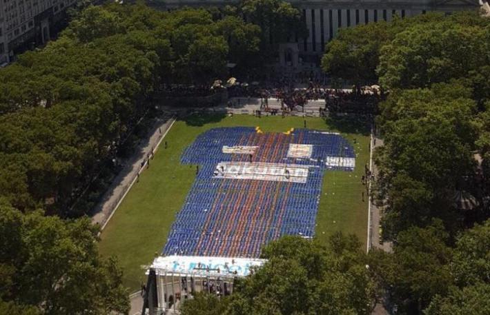 .@ThierryHenry & @FCBarcelona fans helped create a giant Barcelona shirt in New York ? pic.twitter.com/nrJ4hW6UQ9