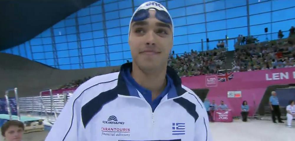 Ο αθλητής του Ολυμπιακού, ο οποίος συμμετείχε στα ημιτελικά των 100μ. ύπτιο και κατετάγη 13ος, δεν είχε έτσι κι αλλιώς πολλές ελπίδες διάκρισης στο αγώνισμα αυτό (είχε την 21η επίδοση) και θα επικεντρωθεί πλέον στα 50μ. (ο προκριματικός γίνεται το πρωί του Σαββάτου), καθώς και στα 4Χ100μ. μικτή ομαδική (την Κυριακή).