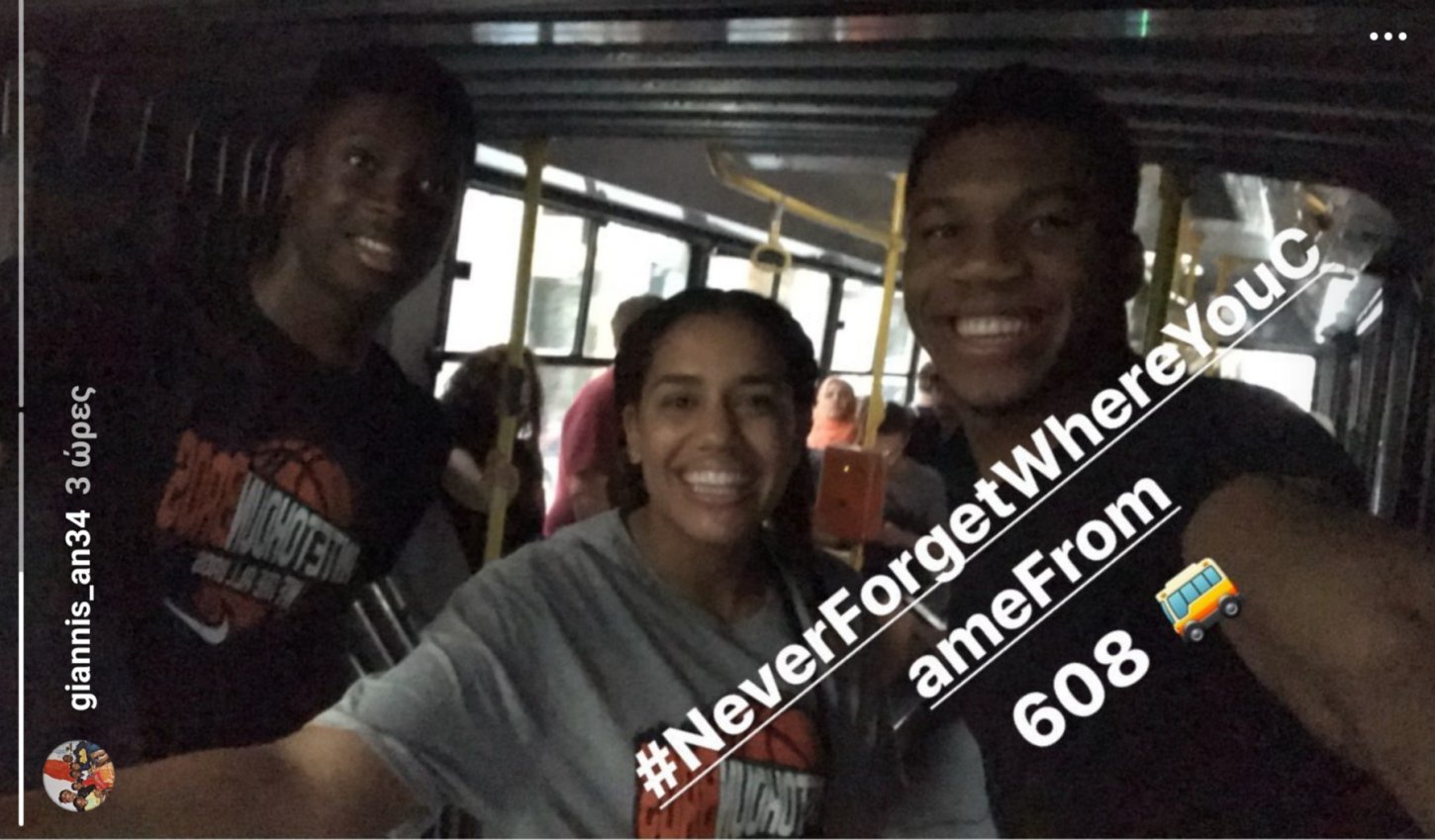 Ο σούπερ σταρ του ΝΒΑ και των Μιλγουόκι Μπακς μπήκε στο λεωφορείο 608, ανέβαση τη σχετική φωτογραφία στο Instastories και χρησιμοποίησε τη λεζάντα «μην ξεχνάς ποτέ από που προέρχεσαι…»