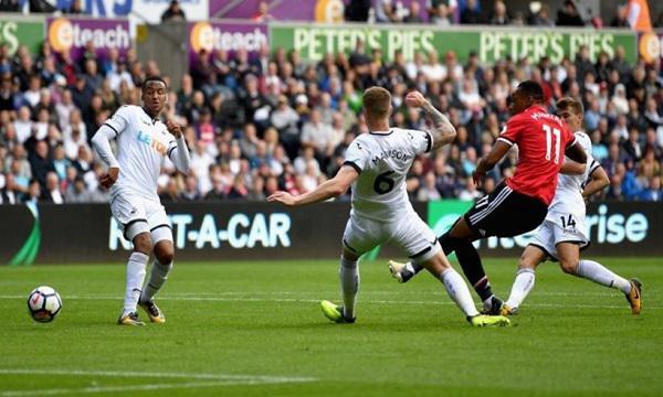 Το ματς ξεκίνησε με δοκάρι για τη Σουόνσι στο 3′, όταν ο Αγιού από αριστερά έκανε σέντρα – σουτ αλλά στάθηκε άτυχος, ενώ, στο 9ο λεπτό, ο Τζόουνς με τον ώμο ισοφάρισε στα δοκάρια. Ο πρωταγωνιστής της μεγαλύτερης στιγμής των «κύκνων», μαζί με τον Έιμπραχαμ, έδειχναν ικανοί να τρέξουν καλά και να εκμεταλλευτούν πιθανά λάθη στα μετόπισθεν των «κόκκινων διαβόλων», οι οποίοι περιόρισαν το παιχνίδι στο μισό γήπεδο και είχαν χαμένο τετ-α-τετ με τον Ράσφορντ στο 36′.