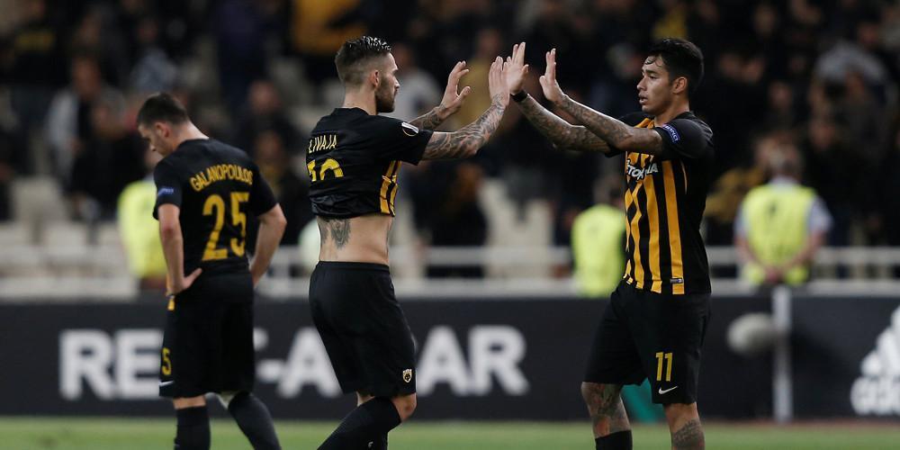 Παρά τη σημαντική απώλεια του Ούρος Τσόσιτς (τράβηγμα) στο 23΄ και την είσοδο του Ανταμ Τζανετόπουλου στο ματς, η ΑΕΚ διαχειριζόταν καλά το προβάδισμα. Μέχρι που δέχτηκε την ισοφάριση σε ένα κομβικό σημείο. Στο 43΄ από την κούρσα του Πίρες και την παράλληλη σέντρα, η μπάλα πέρασε δίπλα από το πόδι του Τζανετόπουλου και του Βράνιες και ο Μονσάιν την έστειλε στα δίχτυα. Της το χρωστούσε η τύχη της Αούστρια…