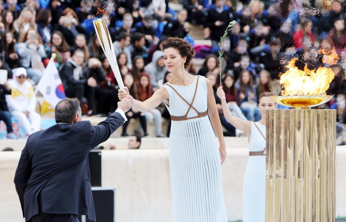 Σε μία λαμπερή τελετή στο Καλλιμάρμαρο οι Νοτιοκορεάτες παρέλαβαν την τιμημένη δάδα από τα χέρια του προέδρου της Ελληνικής Ολυμπιακής Επιτροπής, Σπύρου Καπράλου.