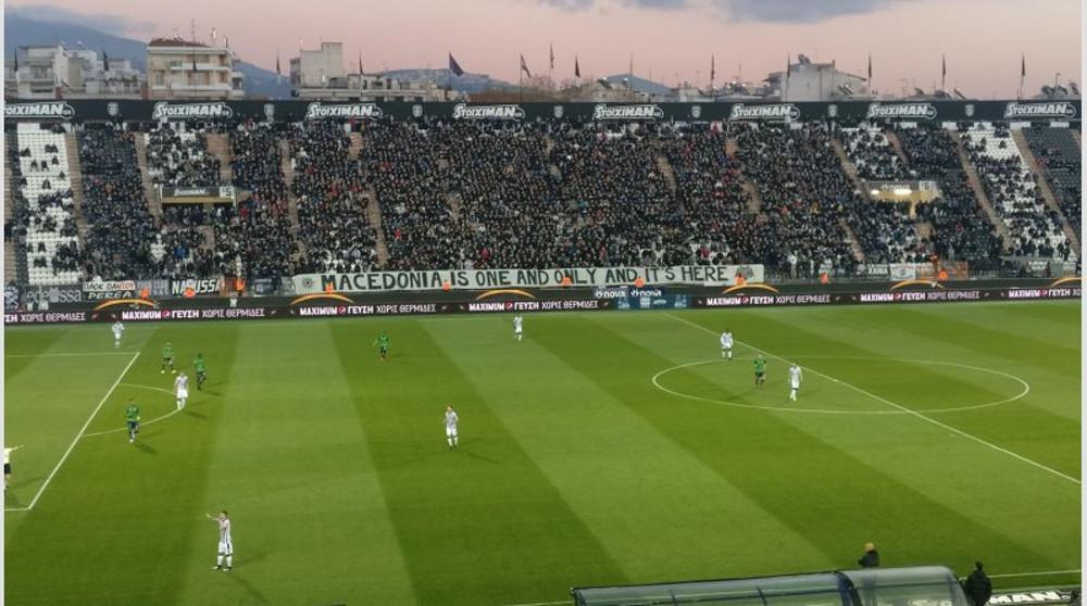 Στα κάγκελα των θυρών 5-6 του γηπέδου της Τούμπας έχει αναρτηθεί από τους οπαδούς του ΠΑΟΚ, ένα τεράστιο πανό με το οποίο παίρνουν θέση για το θέμα της ονομασίας της Μακεδονίας.