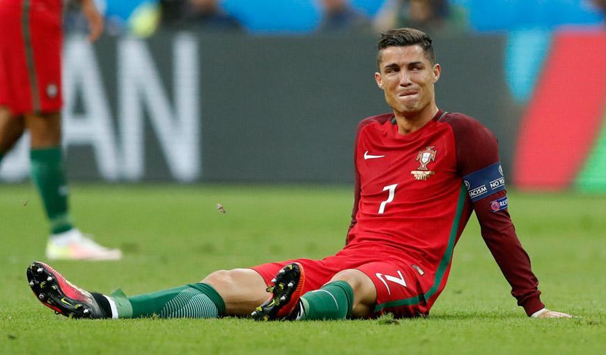 Ο Κριστιάνο Ρονάντο τραυματίστηκε στο 9ο λεπτό όταν ο Παγιέτ του έκανε φάουλ, προσπάθησε να μείνει στον αγωνιστικό χώρο. Αμέσως οι γιατροί της Πορτογαλίας του έβαλαν επίδεσμο στο αριστερό του πόδι, που κάλυψε το γόνατο και το μηρό, και επέστρεψε στο παιχνίδι, όπου έμεινε μέχρι το 25′, όταν ζήτησε αλλαγή.