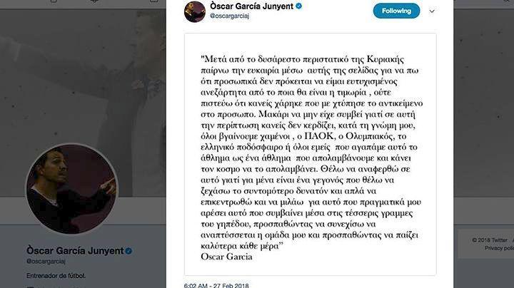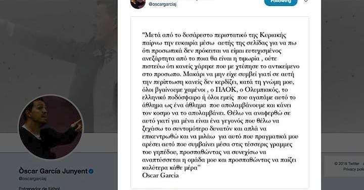 Το έκανε με ανάρτηση στον προσωπικό λογαριασμό του στο Twitter και, όπως τόνισε ο προπονητής του Ολυμπιακού, χαμένοι από αυτή την ιστορία βγήκαν όλοι.