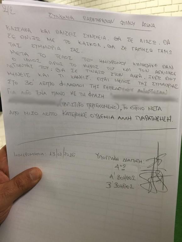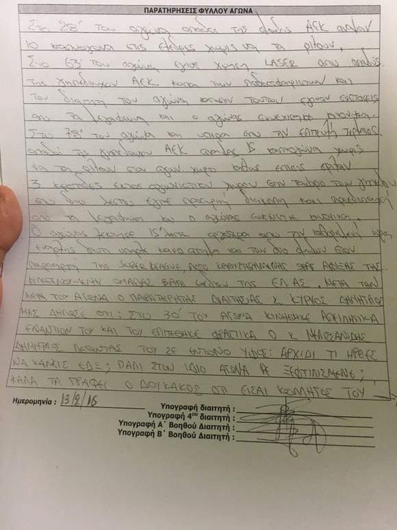 Δείτε τι ανέφερε το φύλλο αγώνα του ντέρμπι ΑΕΚ-Ολυμπιακός (13/2/2016)