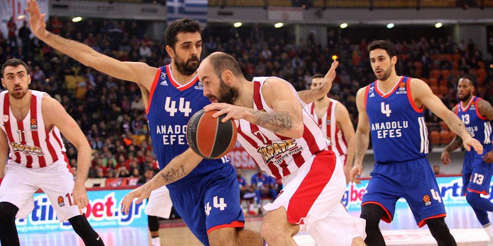 τόχος επετεύχθη έστω και με… ζόρι για την ομάδα του Σφαιρόπουλου: το πλεονέκτημα έδρας είναι πια και μαθηματικά σε ερυθρόλευκα χέρια. Οι «ερυθρόλευκοι» δεν απέφυγαν τα κενά διαστήματα στο ματς με την Εφές, αλλά πήραν αυτό που ήθελαν παίζοντας για τρίτο παιχνίδι χωρίς τον Κώστα Παπανικολάου. Έτσι, ανέβηκαν στο 19-9 και περιμένουν να μάθουν αντίπαλο για τα πλέι οφ. Από την πλευρά της, η ομάδα του Εργκίν Αταμάν έδειξε πολύ μαχητικό πρόσωπο, αλλά δεν απέφυγε την 7η σερί ήττα κι έπεσε στο 6-22.