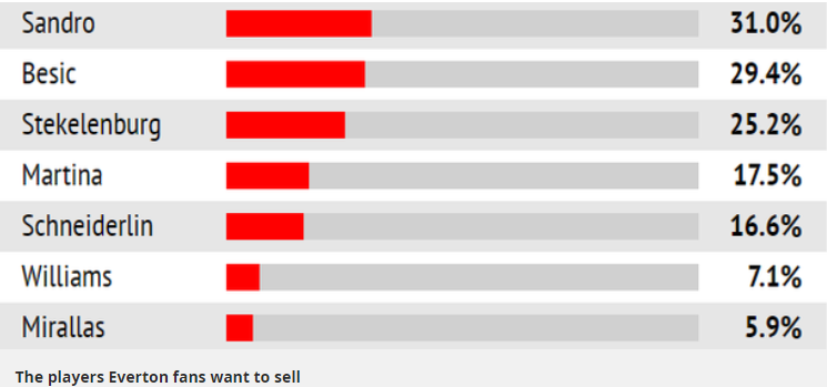Οι φίλαθλοι της Έβερτον ψήφισαν τους παίκτες που θα ήθελαν να δουν στο ρόστερ του συλλόγου και μετά το τέλος της μεταγραφικής περιόδου, με τον Βέλγο να έρχεται τελευταίος στην ψηφοφορία.
