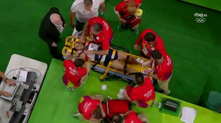Ο άτυχος Γάλλος υπέστη συντριπτικό κάταγμα στην ποδοκνημική. Οι κάμερες απομακρύνθηκαν αμέσως από τον 26χρονος γυμναστή, ο οποίος αμέσως έδειχνε να σπαράζει από τον πόνο, με το ιατρικό προσωπικό να τον απομακρύνει τάχιστα από τον αγωνιστικό χώρο.