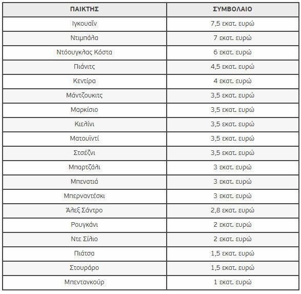 Οι Ιγκουαΐν, Ντιμπάλα, Ντόουγκλας Κόστα, Πιάνιτς και Κεντίρα «συγκεντρώνουν» 29 εκατ. ευρώ, δηλαδή ένα εκατ. ευρώ λιγότερο από τον Κριστιάνο. Δείτε στην παρακάτω λίστα τα ετήσια συμβόλαια των ποδοσφαιριστών που αγωνίζονται στους «μπιανκονέρι»…