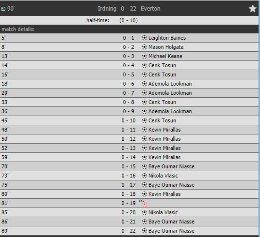 Υπάρχουν κι αυτά τα φιλικά… Που ξεμουδιάζεις από την καθημερινότητα των προπονήσεων. Ομως η Εβερτον μάλλον παρα… ξεμούδιασε κόντρα στην Ιρντνινγκ. Η ομάδα του Μάρκο Σίλβα διέλυσε την αντίπαλό της με 22-0 και δεν έβγαλε το πόδι της από το γκάζι ούτε στο… 89′.