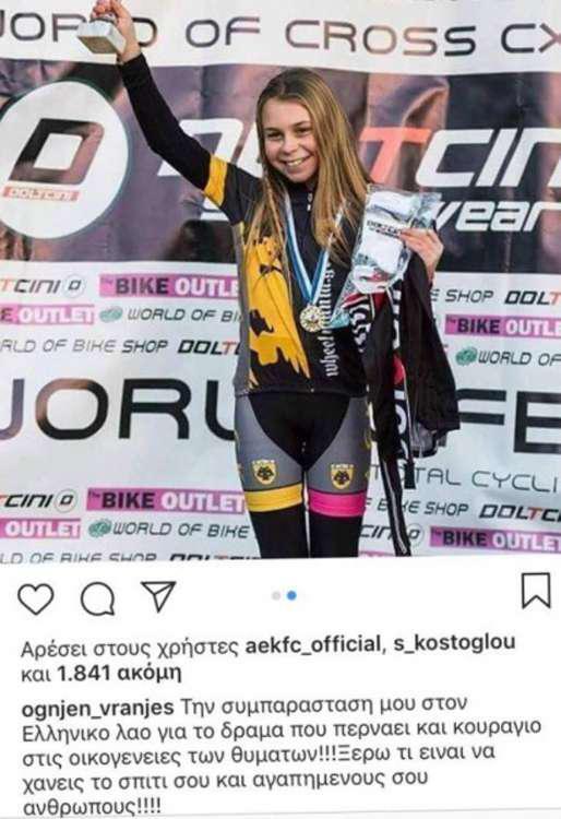 Και οι δύο αθλητές ανέβασαν φωτογραφίες, όπου απεικονίζεται η μικρή Εβίτα, το 13χρονο κοριτσάκι (πρώην αθλήτρια ποδηλασίας της ΑΕΚ), που βρέθηκε νεκρό λόγω των φονικών πυρκαγιών.