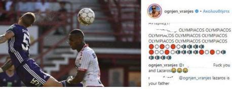 Σε φωτογραφία που ανέβασε στο Instagram, ένας οπαδός του Ολυμπιακού σχολίασε γράφοντας πολλές φορές Ολυμπιακός στ΄αγγλικά. Ο Βράνιες που δεν αφήνει τίποτα να πέσει κάτω απάντησε με απρόσμενο τρόπο. «Fuck you and Lazaros» είπε και έβαλε emoticons με χαμογελαστές φάτσες.
