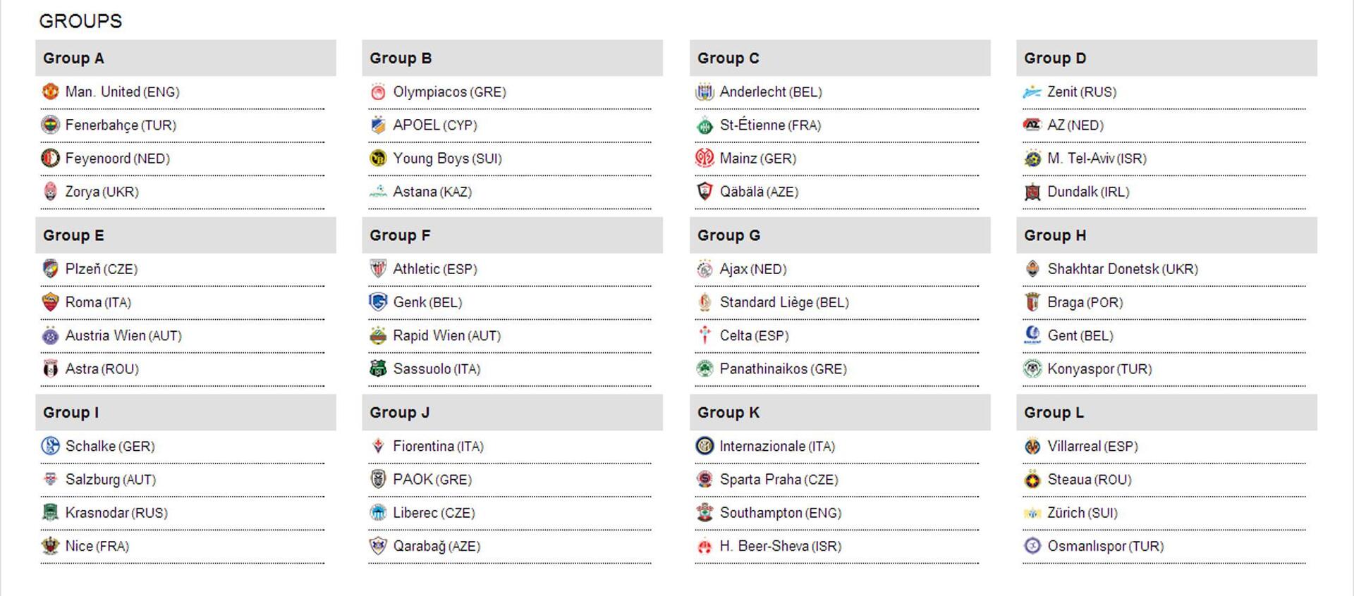 Group Α: Μάντσεστερ Γιουνάιτεντ, Φενέρμπαχτσε, Φέγενοορντ, Ζόρια.