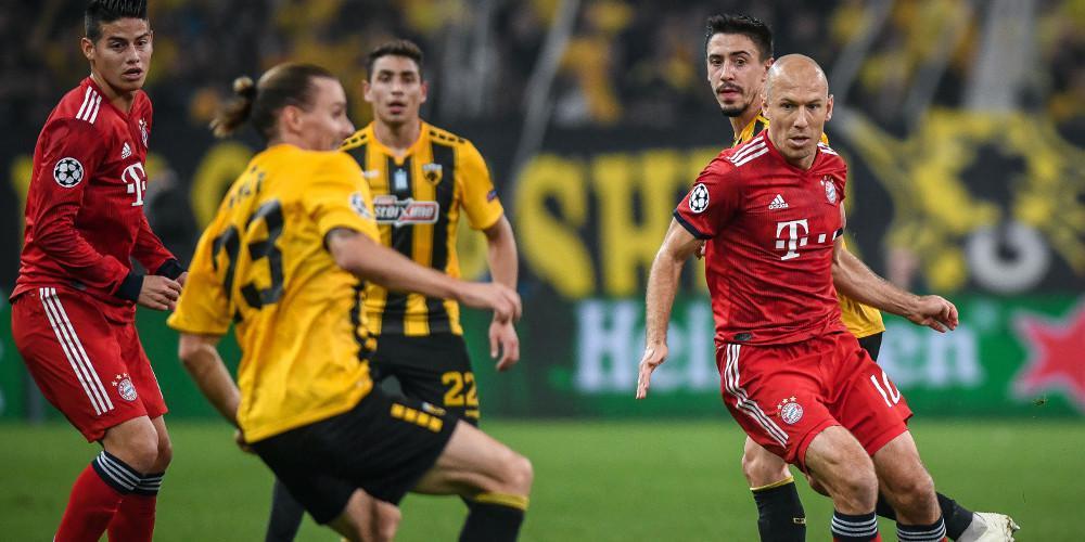 Σε ρόλο παρατηρητή παρέμεινε η ΑΕΚ στο πρώτο 20λεπτο, βλέποντας τους Βαυαρούς να παίζουν μόνοι τους στο γήπεδο. Η κατοχή μπάλας ξεπερνούσε το 70% ενώ οι γηπεδούχοι είχαν προλάβει να αλλάξουν μόλις 8 πάσες μέχρι το 15΄ σύμφωνα με την επίσημη στατιστική υπηρεσία της UEFA.
